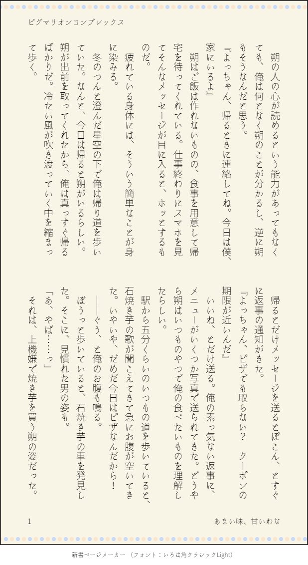 nabisuke☆quiet followDOODLEあまい味、甘いわな🍠🍕 ##ピグマリ show all(+3 images) Tap to full screen (size:618x1132).Repost is prohibited Let's send reactions! freqpopularsnackothersPayment processing Replies from the creator Follow creator you care about!☆quiet follow nabisukeDOODLE夜のお花見🌸 3 nabisukeDOODLEバレンタインネタ💝と🍌 3 nabisukeDOODLE君の好きなもの深夜の串カツ屋 3 nabisukeDOODLE恋のミニチュアガーデン🍙🍮 3 nabisukeDOODLEあまい味、甘いわな🍠🍕 4 nabisukeMOURNING🔺ぶつ森をする馨さん。 recommended works nabisukeMOURNING除霊師×会社員6👻 3 nabisukeMOURNING除霊師×会社員7👻本にするとき多分冒頭になるやつ 3 nabisukeMOURNING除霊師×会社員9👻 4 nabisukeMOURNING除霊師×会社員8👻櫂士とお母さん(と素っ気ないミナ) 3 nabisukeMOURNINGキャラクター設定 2 nabisukeDOODLEモブ視点。ミナ櫂ちゃんが無意識いちゃいちゃで除霊しちゃう話。 2 nabisukeDOODLEミナ櫂ハロウィン🎃👻甘め 4 nabisukeMEMO別れそうなミナ櫂 3 osamu_uke2DONE猫の日のやつ学習防止なしver 大した違いは無いけど良かったら見とって✌️