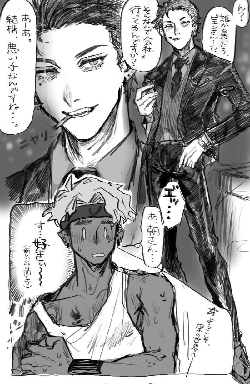 私服で歩いてる時にバッタリ鉢合わせてすぐ気づかれたあげく墨入ってるのバレて「あーあー、こんなんで会社いってるんですか?」って言われて新しい扉が開くビエン。