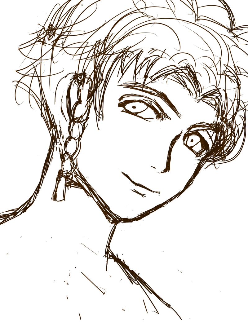 級長クロードの落書き。盟主クロードに落ちた人間なので、落書きクロード描く割合も7:3で盟主が多くなりがち。級長クロード、思春期独特の少年と青年の間の妖しさが出てて良いですよね。この時期の時点でエキゾチックな色気が凄い。尚5年後には、声の低さと共に艶っぽさと色気が爆発するし…