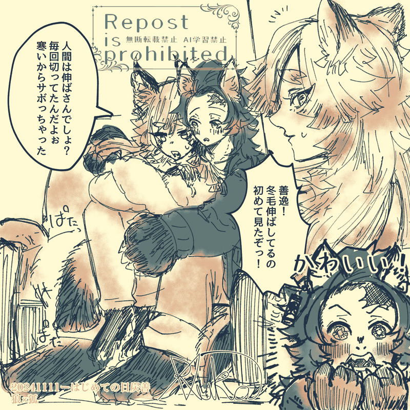 狼炭×狐善です。換毛期があるとかわいいなのらくがき。
