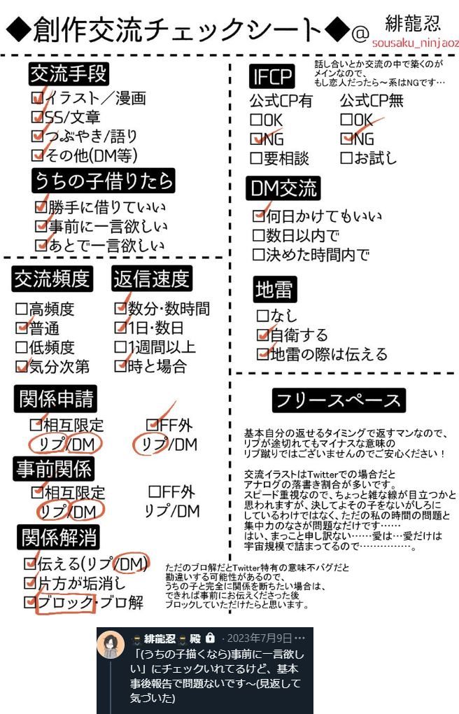 sousaku_ninjaoz☆quiet followMEMO創作する上での地雷チェックシート版。こちらもTwitterから避難させたものです。 ##チェックシート show all(+1 images) Tap to full screen (size:656x1020).Repost is prohibited Let's send reactions! freqpopularsnackothersPayment processing Replies from the creator Follow creator you care about!☆quiet follow sousaku_ninjaozDOODLE※ツイートからの場面を描いてみたやつです。お酒に酔っちゃった唯月さんが、貴虎に色々ぶっちゃけて貴虎がそれに乗る話。(かなり端折った)こんな感じかなと…思って…。唯月さんがえっちぃのがいけないんだっ!もっとやれ!(野次) 2 sousaku_ninjaozMEMOこっちにあげてなかったやんけ、の分布とか年表です。 3 sousaku_ninjaozMEMO創作する上での地雷チェックシート版。こちらもTwitterから避難させたものです。 2 sousaku_ninjaozMEMOR18系の性癖or地雷チェックシートです。Twitterにおきっぱだとそのうち埋もれるので避難させました。色々割ったら都度更新しようかなって思ってます。多分。 2 sousaku_ninjaozDOODLEメリクリ。 2 sousaku_ninjaozDOODLEiPad版クリスタを導入したので練習に。 2 recommended works Subako1224REHABILI⚠️キバナラゴン 茄子猫DONEJEのまどかちゃんところにゃんさん、あと龍7からカムロップちゃん💛龍7でまどかちゃんそっくりの汎用モブの衣装をJEのまどかちゃんに着せるという企画を個人的にやっているのですが、今回は浜子さんとこのお店にいる翼ちゃんというセクシーな女の子の衣装をまどかちゃんに着てもらいました😊 YukiPAST過去絵(not BL)まとめ 9 yuru18898339DOODLEフィリックスとチャンビンのお話⚠︎妄想誤字ありますがめんどくさいのでそのままにしてます✏️ 6 yuru18898339DOODLE学パロ自分のできないことができるハンへの嫉妬とリノを好きな気持ちでいっぱいいっぱいになるヒョンジン と、ただ2人と仲良くしたいハン です。(長い) 😼🦙🐿 メスガキ流行らせコラMOURNING途中で飽きたりもう続き描く気力がないやつ 7 Q781NDOODLE 2 茄子猫DONE少し寒くなってきたのでJEのまどかちゃんに例のセーターことセクシーニットワンピースを着てもらいました💛影の向き等いつもと少し違う感じに付けてみたのですが雰囲気変わって楽しい😊JEといえばめでたい事に二周年を迎えたので新作の話題とかそろそろ欲しいですね(サブイベでこっそりまどかちゃん出して出して~💛) 茄子猫PAST今日は節分なので過去に描いたアンチャの落書き投下。鬼っ娘クロエちゃんと鬼フリン先生。ボールペンで描いたものに色塗って加工。めっちゃ趣味全開で楽しかった♪