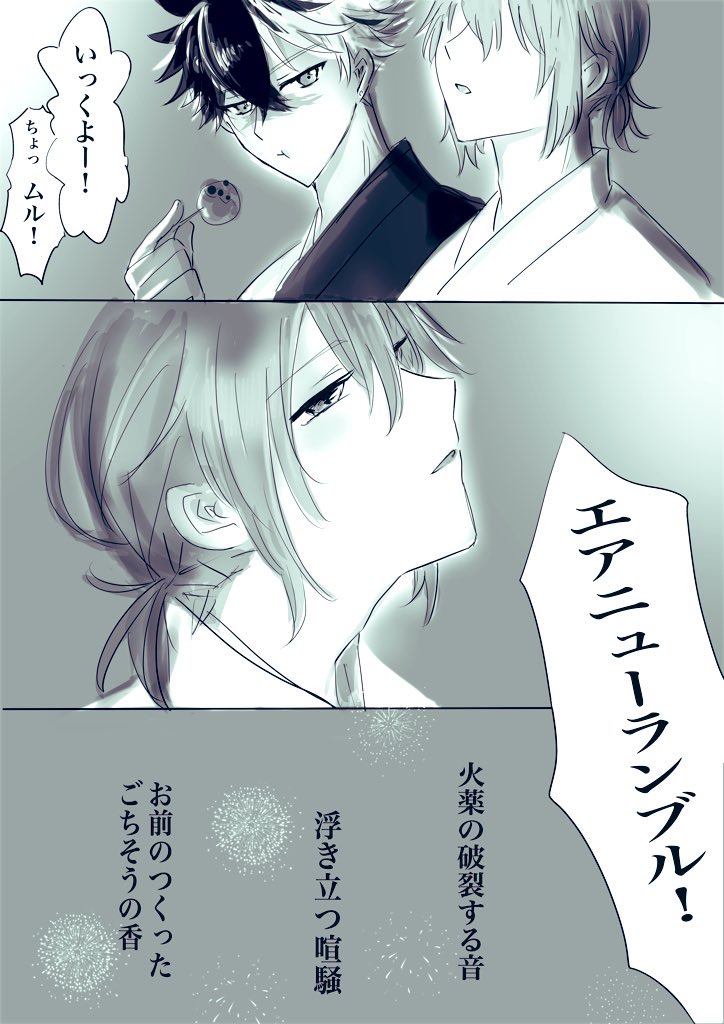 とくにら☆quiet followDOODLEワンドロお題:「夏祭り」「あきらめ」「香る」魔法舎で夏祭りを平和に楽しみました。昔から、お前が穏やかに生きたがってたのは知ってるよ #ブラネロ branello show all(+1 images) Tap to full screen (size:724x1024).Repost is prohibited Let's send reactions! freqpopularsnackothersPayment processing Replies from the creator Follow creator you care about!☆quiet follow とくにらDONEそういうブネ14展示。↓烏天狗過去作誕生 https://poipiku.com/1361454/6577929.htmlある夜 https://poipiku.com/1361454/6877847.html危機前編 https://poipiku.com/1361454/7395362.html後編 https://poipiku.com/1361454/7402038.html 9 とくにらDONE2025年2月22日そういうことにしてるつもり!13【全体き5:縷々】にて参加。マンガ カラー15P展示中。鍵あけました。メインストーリー第2部、石になりかけたネロを目の当たりにしたブラッドリーは...。 15 とくにらMENU2023/7/1~7/2開催 ブラネロwebオンリー10「Bright Next Stage」スペース:祝福お1「縷々」の店舗内書き込みボードから、エアスケブ受付いたします💐ここと、ツイッターで完成報告いたします〜追記)エアスケブ6枚追加。リクエストありがとうございました!🙇♀️ 7 とくにらDONE1/14~1/15 そういうブラネロ8 展示冬春ブラネロの漫画。冬➡️←←春 てかんじの二人。まだ結婚してない。 10 とくにらDONEけものパニック‼︎展示作品。パスは店舗のお品書きにあります!鴉天狗家族の日常小ネタあつめです。①ちび誕生編 https://poipiku.com/1361454/6577929.html②鴉天狗家族のある夜編 https://poipiku.com/1361454/6877847.html③危機 前編 https://poipiku.com/1361454/7395362.html④危機 後編 https://poipiku.com/1361454/7402038.html 3 とくにらDONE10月9日ブラネロwebオンリー「現の沙汰もおまえ次第」展示。テーマパークデートするブラネロです。まだ付き合ってない。 2 related works zzzireeDONEブラネロ CALLBACKそういうブラネロ3で公開したパラロイパロの漫画です。(※死ネタあり)モブなど多数自分の中でパラロイの二人を完結させたくて描いた全て捏造の話です。多少の血、暴力表現があります。ネロがフィを訪ねる所は2人の記憶が交わるよう描いてます元のデータが吹っ飛んだため、加筆修正してません…モブとか適当背景で申し訳ない敵のボスはノーヴァをイメージ。 91 44_mhykSPOILERイベスト読了!ブラネロ妄想込み感想! 523 豚肉の赤ちゃんDOODLEブラネロ とくにらDOODLEまほステ第1章の感想らくがき。ブネ賢者が、ブラッドリーしか見てない、ブラッドリーに狂ってるメモです。自分用メモなので読みづらいよ!ネタバレ注意のため、誤読防止で鍵をつけてます。パス:butaiネタバレ大丈夫な方だけどうぞ。 12 とくにらDONE8/8 そういうブラネロ3 SummerFes.2021 9件のエアスケブ、ありがとうございました!ブラネロ〜幸せになあれ〜「水鉄砲でうち合うふたり」「マリンのお洋服のぬい」「海でキャッキャッしてるふたり」「市場で買い物するふたり」「オイルぬりぬりするふたり」「メニュー」「ボスの部屋のソファで酒飲みながらイチャつくふたり」「珍しくボスを口説くネロ」「向き合ってギュッと抱きしめているふたり」 19 azurem00nDONE【ブラネロ】パラロイ軸ブラネロでシガーキスが見たかったんです。 3 polar_night_htMOURNINGカウリスつれええええってなりながら書きました。現パロのブラネロです。 3268 azurem00nDONE【ブラネロ】ブラネロパロwebオンリー開催おめでとうございます!ネロイドに執着するブラッドリーの話です。※かっこいいボスはいません 3364 時緒🍴自家通販実施中TRAININGお題「愛」「誕生日」「食べる」盗賊団に入る前の食事を思い出すネロが、みんなに誕生日お祝いをされるお話です。 3632 recommended works nanhihi373SPOILER「俺だって……………………」まほやく2周年スト読みました……………………私はここからまだ再生の話が待っていると信じてます……………… azurem00nDONE【ブラネロ】ワンドロライなどでTwitterに上げたSSまとめです。 16 nanhihi373DONEこの2人多分互いに互いのでこ出し既に見てるよなきっと…と思った劣情絵(ブラネロ) Deu_in_the_AirDOODLE色色一下 水野しぶきDOODLE【ミスオエ♀】生理の話※ブラネロ♀要素あり※学パロ先天性女体化 10 anri_mahoDONE現パロこたつセックスブラネロです。割としょっぱなからすけべ始まってます。睡眠姦っぽいのあります!成人ですか?y/n 2053 ukaDONEブラネロwebオンリー第10回開催おめでとうございます!シリアスめの指輪の漫画(たぶん)です \祝/ぶねすて 6 しおんDONE閉じ込めた人と閉じ込めなかった人の話。大事なところで微妙に噛み合わないけど、互いに互いが特別で仕方ない二人。※2周年スト、4周年スト、白雪イベ、メインスト第二部、ノーチェを踏まえた話です。 5892 _wt_am_MOURNING5頁漫画 ブラネロ前提のネロのみ※東の国での微捏造の設定あり※ 6
