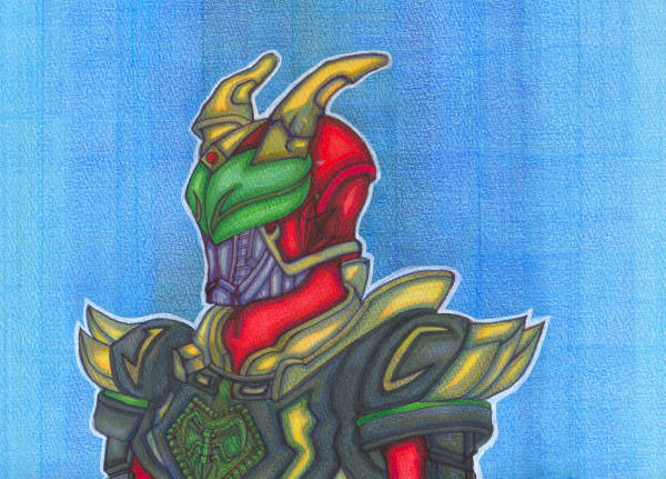 こんばんは、今回のイラストは仮面ライダー剣のワイルドカリスを描いてみました。