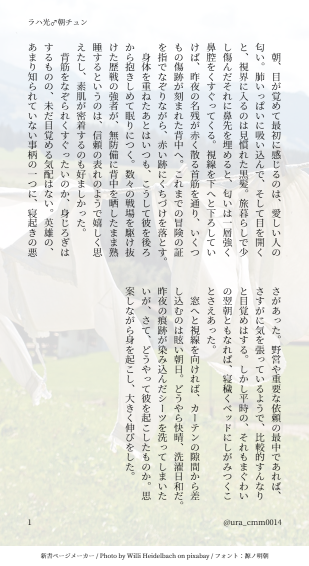 茶豆(裏) ■FF14二次創作(主に小説、ときどき絵)をポイポイしてます。■ラハ光♂♀、公光♂♀、ジャック光♂などなど。■Twitter:@ura_cmm0014 ☆quiet follow Yell with Emoji POIPOI 53