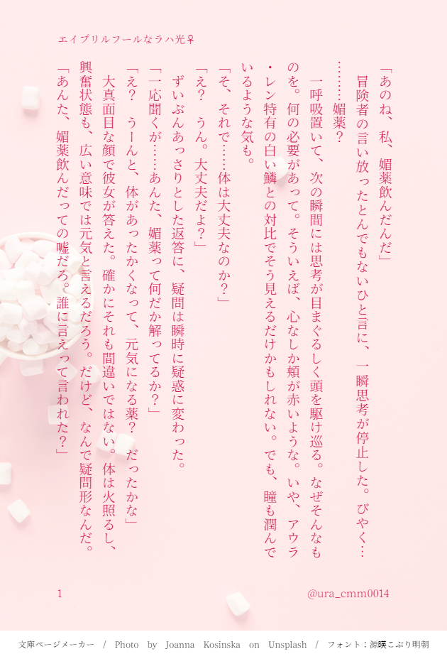茶豆(裏) ■FF14二次創作(主に小説、ときどき絵)をポイポイしてます。■ラハ光♂♀、公光♂♀、ジャック光♂などなど。■Twitter:@ura_cmm0014 ☆quiet follow Yell with Emoji POIPOI 53