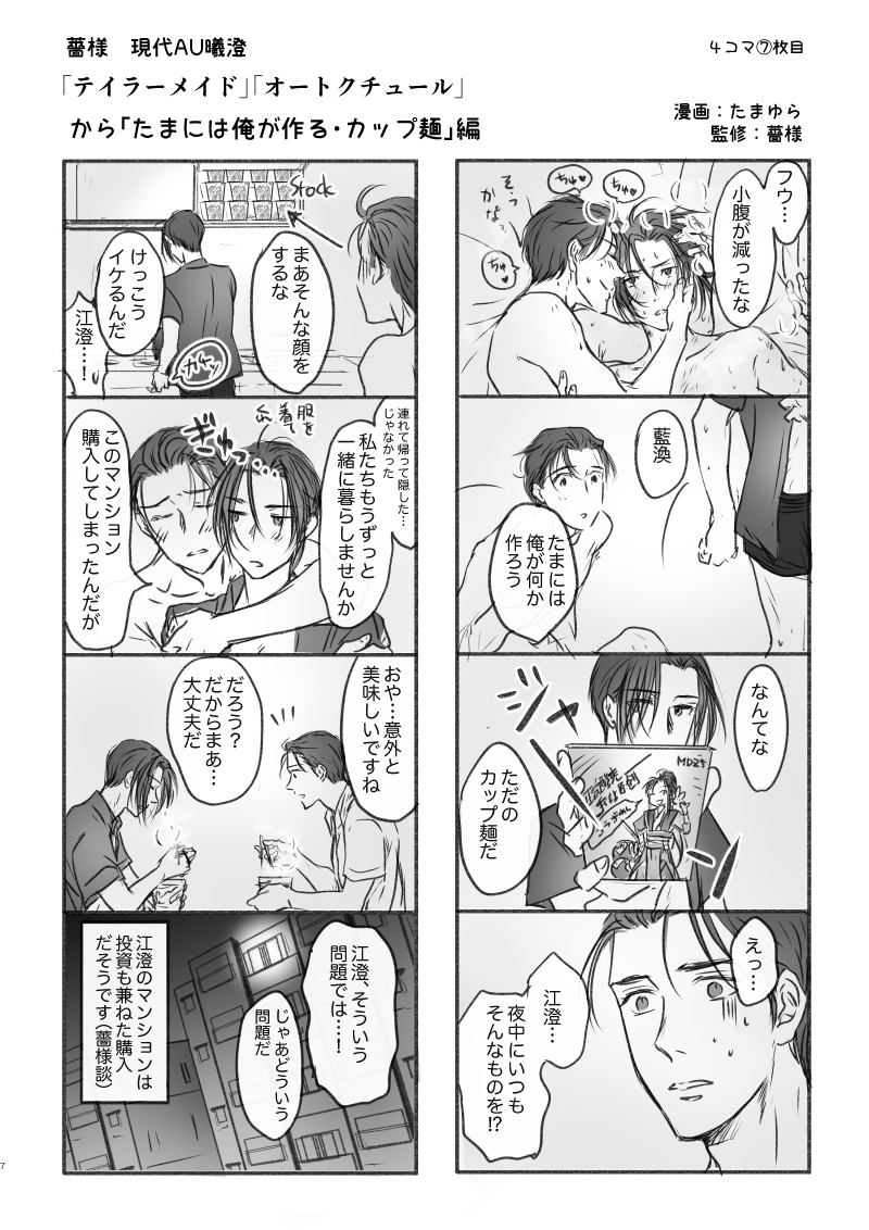 4コマは一旦落ち着きます。薔様による小説、カップ麺じゃない版キッチンいちゃいちゃ、同棲話などを待ちます!!☺️