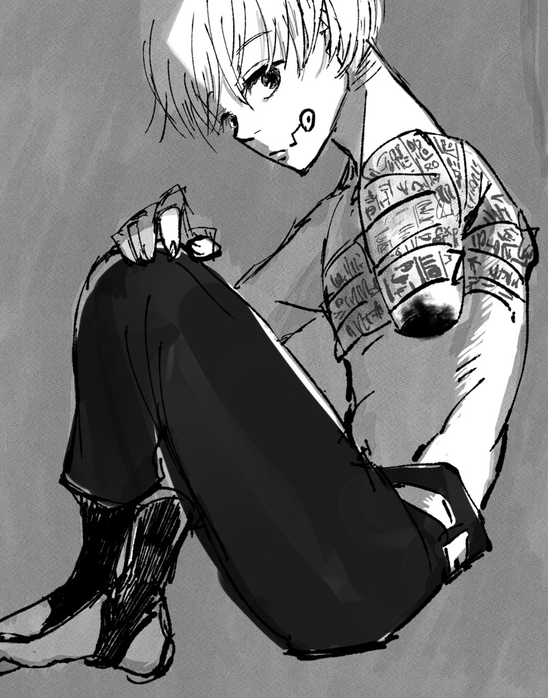 任務終わり、木造の小さな屋根付のバス停で二人きり。ベンチに腰をおろして最寄り駅に向かうバスを待つ。セミの声が混ざり合ってジンジンと頭に響く。僕は思わず制服のボタンを外してから胸元を掴んでパタパタ仰いだ。