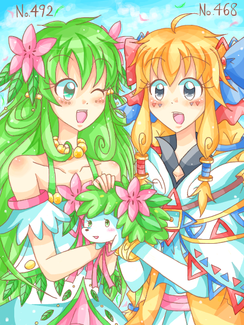 リノ(シェイミ♀寄り)、ハピネ(★トゲキッス♀)。