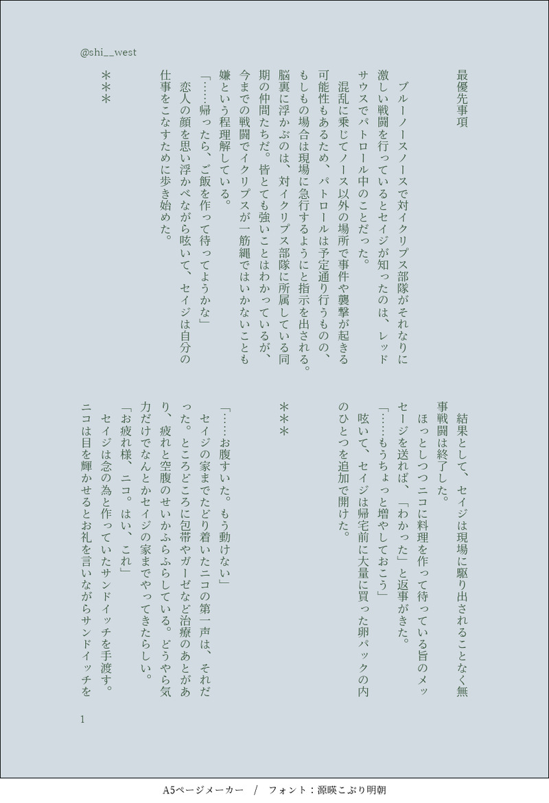 shi__west @shi__westそのまま表に流すのは躊躇われるけど支部に投げるには短い話や、フェイジュニ以外のカプを投げます。 ☆quiet follow Yell with Emoji POIPOI 19