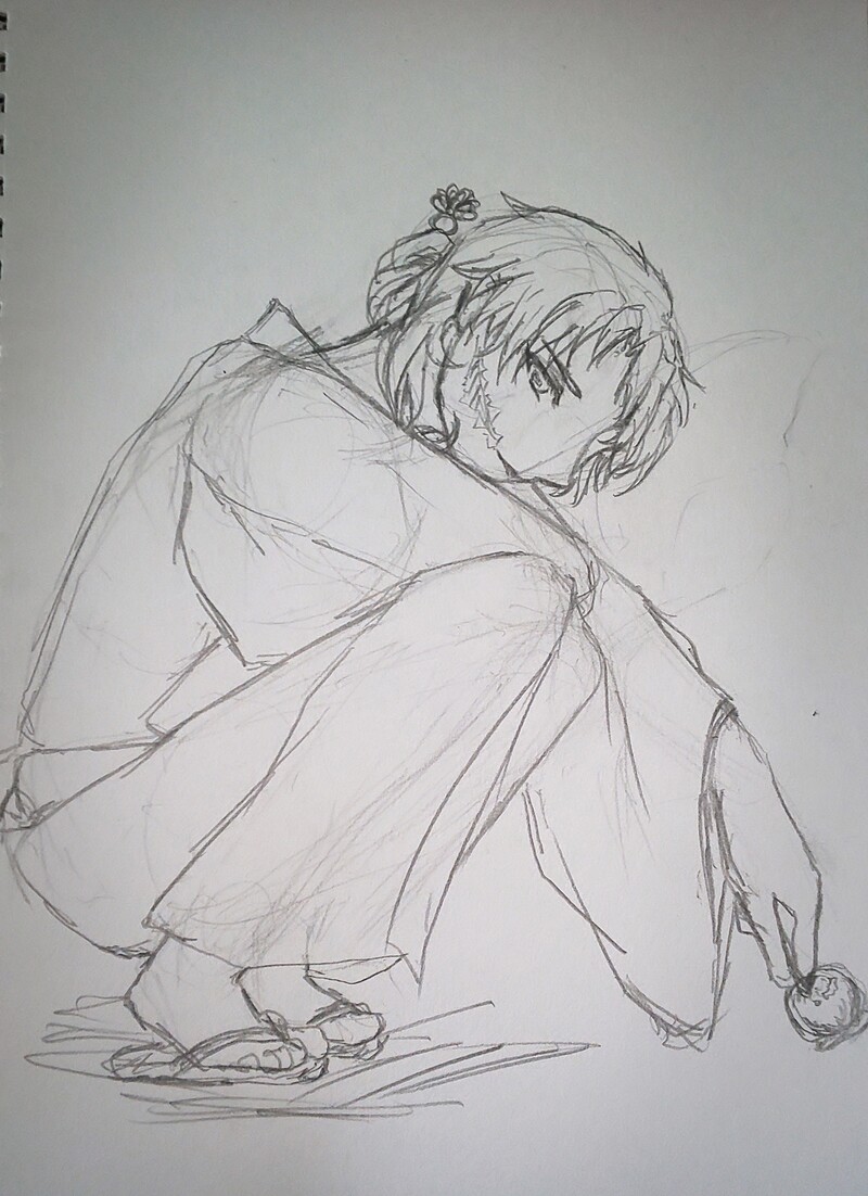 らくがきたのしい。簪で髪止めてるのを描きたかった。
