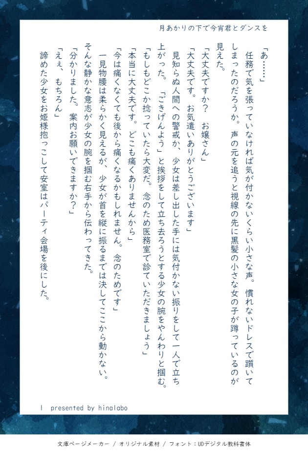 hina_labo☆quiet followDONE8/8web安コ(広義)オンリーの企画、仮面舞踏会で書いたSSの再掲です。お題は舞踏会で「月明かりの下で今宵君とダンスを」 #安コ cheapChild show all(+4 images) Tap to full screen (size:630x928).Repost is prohibited Let's send reactions! freqpopularsnackothersPayment processing Replies from the creator Follow creator you care about!☆quiet follow hina_laboMOURNING仄暗い感じの書きかけ降コを見つけたので供養。降谷はコナンの正体&パイカルで元の体に戻ったことを知っています。 1562 hina_laboDOODLEたぶん違うと思うけど、予告でコナン君が巻いている赤いリボンマフラーが安室さんからのプレゼントだったらいいな。という妄想SSです。今週末いよいよ公開、今年の映画も楽しみですね!! 736 hina_laboDONE小五郎のおっちゃんとコナン君のコンビも好きなので、映画の中でアニコナみたいな面倒見のいいおっちゃんが見たい!!というわけでコミック20巻の奇術愛好家殺人事件でもしも2人がロッジへ戻らずにおっちゃんがコナン君におかゆを作ってあげたら…というSSです。ここ数年は哀ちゃん庇って怪我したり酔いつぶれたりぎっくり腰になったりで途中離脱が多かったので今年は大活躍しそうで楽しみです!! 1136 hina_laboREHABILIコナン君と安室さんのラジオDJ風で2人の会話のみのSSです。FM米花とかハロウォンのアバターみたいなの、またやって欲しいな~という超個人的願望で書いたものです。1/1に上げたいなと思っていましたが、なんやかんやで1/13になってしまいました… 1270 hina_laboDONE5/26インテ無配「100ドルの五稜星」の後日談で、コナン君と平次君と安室さんのお話です。今年は男子高校生たちのわちゃわちゃが可愛かったですね!!ラストの平次君があまりにも気の毒すぎたので安室さんに助けてもらいました(*^^*) 1724 hina_laboSPOILER本誌9号ネタバレありの安コSSです。2人に喧嘩させたい訳じゃないけど、仲良しの中にちょっとした不穏な空気があると萌えませんか?萌えますよね!?ラストページがあまりに衝撃的すぎて感情が追いついていません…安室さん、敵じゃないよね? 1551 related works auk_pPAST執行前に描いたやつこれもあった 2 auk_pPAST大人と子供と言う図が好き過ぎるんだなあ 2 auk_pPASTあたまがゆるい 2 auk_pPAST本誌とか色々 4 auk_pPASTとにかく俺の安コを見ろ 3 auk_pPASTあむぴとヌッコ auk_pPASTうーん 4 bowwow359MAIKINGピが女々しくなりすぎて仕上げるかどうか悩んでるブツ後で消すかも※攻めの女体化注意 悠希つばさDOODLE安室さんにロングカーディガン着せたい…って思って描き始めたのが、ゼロシコ流しながら描いてたらこうなった recommended works auk_pPAST当時は楽しく描いていたんですよ 2 auk_pPAST大人と子供と言う図が好き過ぎるんだなあ 2 auk_pPASTお互い何やってんだかなあと言う気持ち ふみか🍊DOODLE🎀 2 さめじまDONEお祝いしたい安コ 5 daikon_saeDONE8/8開催 安コWEBオンリー うそつきの舞踏会の展示品です。初めて安コを描いたので、拙いところが多いですが。。あむさんがコくんのことを意識する・・・というお話です。 7 さめじまDONEやっと自覚した安室さんオンイベ、うそつきの舞踏会-ワルツ-の無配でした。リアクション、書き込み、マシュマロ、ありがとうございました♡ 11 さめじまDONE囚われた大人(安コ降コ)ifのお話です。パラレルみたいなもの。伝えられなかった想いを夢の中で(夢でさえも押し殺していますが)コナンくんに受け入れて貰う、囚われてしまった大人の置いてきぼりになった悲しい恋心 8 さめじまDONE #こんな感じの二人くださいhttps://odaibako.net/gacha/1536お題ガチャお借りしてます!このお題ガチャすっごい素敵だよ…皆… 5