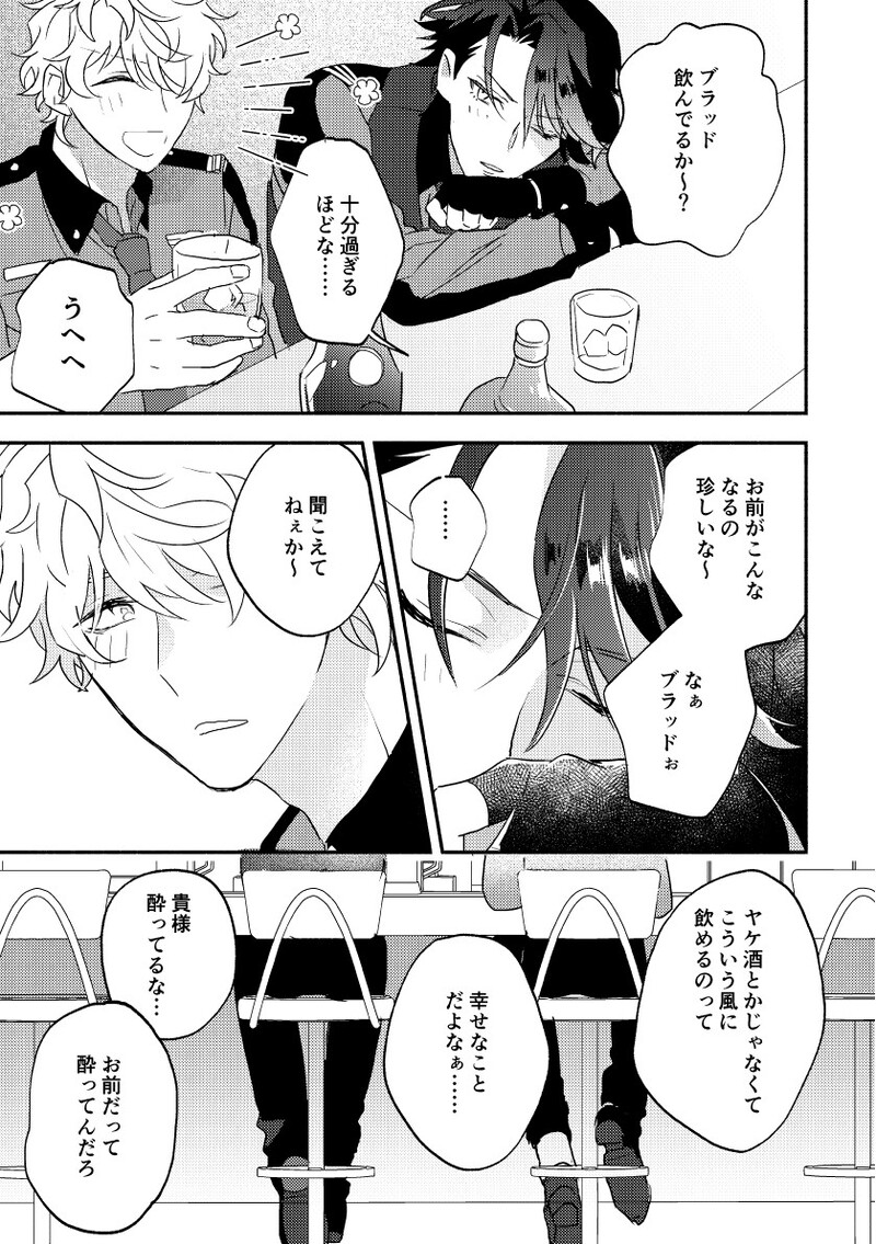 yuki_8686☆quiet followDONEブラキスwebオンリー「お迎えはお小言と共に2」展示漫画一緒に酒飲むブラキス漫画(4P+1P)おまけのおまけにサークルカット文字なしPASSはイベントのおしながきに記載しております。 #ブラキス brachis show all(+5 images) Tap to full screen (size:839x1191).Repost is prohibited Let's send reactions! freqpopularsnackothersPayment processing Replies from the creator Follow creator you care about!☆quiet follow yuki_8686DOODLE婦警キースちゃん(女体化) yuki_8686DONE※女体化🍺ちゃん(ナイプ 2 yuki_8686DONEブラキスwebオンリー「お迎えはお小言と共に2」展示漫画一緒に酒飲むブラキス漫画(4P+1P)おまけのおまけにサークルカット文字なしPASSはイベントのおしながきに記載しております。 6 yuki_8686DOODLEブラッド様の許可なく飲みません yuki_8686DOODLEバレンタインフェイキス描いたら出る yuki_8686DOODLE今日はもっと飲んでいいよっていうフェイキスポーズ集参考 related works bk_sora_DONE9/11sun. ブラキスWebオンリー展示SS『君色ブートニア』(全年齢) 1100文字以前Twitterで公開したSSです。ブライダルイベのイベストを読む前に、キースの衣装(胸元のブートニアの色)に滾りすぎて勢いでワンライしました。後日、ブートニアの紫色のバラを手に取り掲げて見るキースの戦闘モーションを見て、書いた物と見比べ悶絶しました。自身の過去作で1番好きな作品です 3 ssssssssaku_iMOURNING3年前くらいに出そうとしてたブラキス本の供養🙏下書きのページあり、途中までです...!1部2章〜5章あたり 23 *雪華*DONEブラキス版ワンドロ&ワンライ第5回でのお題から『微熱』『わがまま』を使って書いた話です。キースがちょっと体調崩してます。 2046 *雪華*DONEブラキス版ワンドロ&ワンライ第7回でのお題から『得意料理』を使って書いた話です。思い出話もつっこみたかったけど、時間が足りなかった!今回のイベのPトークネタが入ってます。 1598 *雪華*DONEブラキス版ワンドロ&ワンライ第6回でのお題から『サングリア』『お前はいつもそうだ』を使って書いた話です。甘いの得意じゃないキースがサングリア作るのって、人に飲ませたいからだよね……。 1895 bk_sora_DONE9/11sun. ブラキスWebオンリー展示SS『黄金比率は1:1』(全年齢)4500文字疲労がピークのブラッドに、キースがお味噌汁を差し入れするお話しです。前半は、キースがブラッドのことを考えながらウエストのキッチンで料理をしているので、ウエストメンバーが出て来ます。ブラッドは後半からです。ミラトリアカデミー時代、ウエストセクタールーム、執務室の捏造含みます。 11 mimi_soilehDONEブラキスキース、HBD! 7 mimi_soilehDONEアイツ×ksのような、ブラキスのような。短かめの五章前の幻覚。四章までのネタバレと流血注意! 5 bk_sora_DONE9/11sun. ブラキスWebオンリー展示SS『きらい、きらい、すき』(全年齢)1500文字エリオスチャンネルネタです。ブラッドがノースのヒーロー達とお寿司を食べたことをエリチャンで知ったキースは、きっとヤキモチを妬いたんだろうなと思って書きました。ほぼフェイス目線、最後だけキース目線です。 4 recommended works mimi_soilehDONEアイツ×ksのような、ブラキスのような。短かめの五章前の幻覚。四章までのネタバレと流血注意! 5 citrus_1412PASTベスティ!フェイビリフェイ 6 kirikiridDONE【フェイキス】 #FKワンドロワンライコラボお題:猫ねこみみで消化 kirikiridDONE【フェイキス】 #FKワンドロワンライコラボお題:眠れない夜/お酒そういう夜もある。 1688 kirikiridDONE【フェイキス】 一周年カドスト後※Pixivに掲載済み 2011 bk_sora_DONE9/11sun. ブラキスWebオンリー展示SS『きらい、きらい、すき』(全年齢)1500文字エリオスチャンネルネタです。ブラッドがノースのヒーロー達とお寿司を食べたことをエリチャンで知ったキースは、きっとヤキモチを妬いたんだろうなと思って書きました。ほぼフェイス目線、最後だけキース目線です。 4 bk_sora_DONE9/11sun. ブラキスWebオンリー展示SS『黄金比率は1:1』(全年齢)4500文字疲労がピークのブラッドに、キースがお味噌汁を差し入れするお話しです。前半は、キースがブラッドのことを考えながらウエストのキッチンで料理をしているので、ウエストメンバーが出て来ます。ブラッドは後半からです。ミラトリアカデミー時代、ウエストセクタールーム、執務室の捏造含みます。 11 __🏠DONE付き合ってないフェイキス。 5 __🏠DONEブラキス。 3