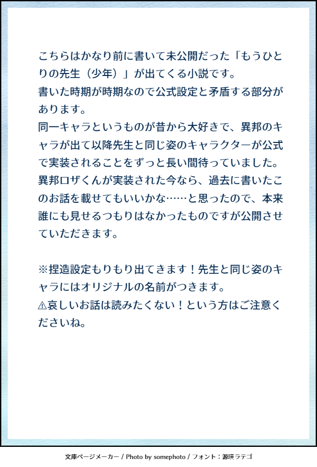 かなり前に書いていた未公開小説を蔵出しします。16ページあります。