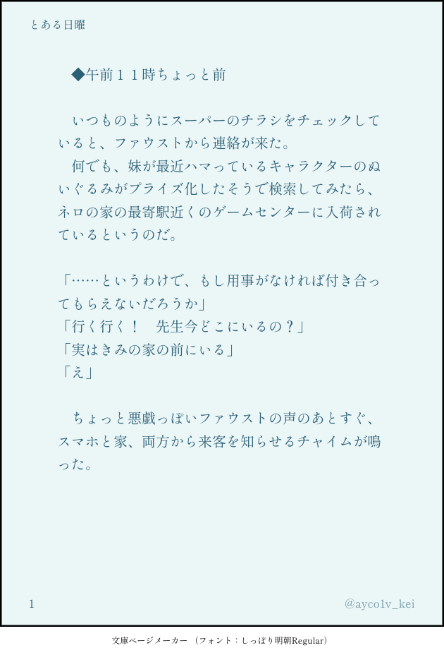 🌕 🌊☆quiet followMOURNING現パロオンリーでひっそりリアルタイム更新していたフォ学番外編のネファ(+ぬい)です。当日読んでくださった方々、ありがとうございました! #ネロファウ neroFau show all(+27 images) Tap to full screen (size:630x928).Repost is prohibited Let's send reactions! freqpopularsnackothersPayment processing Replies from the creator Follow creator you care about!☆quiet follow 🌕 🌊PASTネロファウ晩酌アンソロ「MAKE A TOAST」に寄稿したもののWeb再録です。ネロとファウストが北の方に飛んで酒を飲む話。 5404 🌕 🌊INFO現パロ、くっついて10年選手のネファのファウストがどうにかして過去のネロの童貞を食えないものかと考えてしまったことから始まる話です。タイトルのとおり、キャラ崩壊あり、えっちありの何でも許せる方向けの本になる予定です!来年出します!何月かはわかりません……冒頭ちょっぴりとすけべ部分の一部をどうぞ。 4078 🌕 🌊MOURNING現パロオンリーでひっそりリアルタイム更新していたフォ学番外編のネファ(+ぬい)です。当日読んでくださった方々、ありがとうございました! 28 🌕 🌊DONE夏はあつくてとけてしまう(完全版)夏のフォル学ネファ。一線を越えるか越えないか。全年齢版(Twitter)+ちょっといかがわしい版(もちふた)18歳以上の方ですか? 27 🌕 🌊DONEパジャマパーティ、おさなな就寝後のネロファウ(未成立)ねふぁの湿度高め。いずれ成立する。 1840 🌕 🌊MOURNINGホラーな目に遭ってるのはネロだけ。ブとズとフィとシャも少し出る。 1070 related works moegistDONEあらしの谷でしっぽりいちゃいちゃするの好きすぎ問題成人向け・高校生不可18歳以上ですか? 10 🌕 🌊DONE特に何があるわけでもないネファ kannanininiDOODLEおたまほ2にて展示していた、いちゃつくネロファウです※一部トレス 🌕 🌊DONE夏イベの幻覚ネファ(まだ付き合ってない)三人不在の魔法舎でのファウスト+α 10 🌕 🌊MOURNING今週のネロファウ様より「夜明けを前に」をお借りしました。 🌕 🌊MOURNING以前、今週のネロファウのお題「君の瞳に」をお借りしてTwitterに上げたものです。 4 亘理湯DOODLE目を閉じて、せーので魔法を唱えて女性になってほしい。ネロファウで女体化ネタ。なんでも大体許せる人向け。 2 🌕 🌊MOURNING今週のネロファウ様よりお題「おそろい」「全部、酒のせい」をお借りしました。 2 🌕 🌊MOURNING今週のネロファウ様より「真夜中のキッチン」「夏の思い出」をお借りしました。 recommended works 亘理湯DOODLEファウストが幸せ地雷みたいなこと言うから、超幸せになってほしくて心配になったんですけど、そうでしたこのひと色んな意味でツンデレなんでしたと思い出して安心しました(By賢者) 亘理湯DOODLEそろって寝不足。 亘理湯DOODLE「先生、これ直る?」「治すよ」 亘理湯DONEネロファウWEBオンリー『もちろんふたりで』開催おめでとうございます!■甘い皿と苦い夢■WEB漫画21P 過去の姿に戻る呪いを受けたファウストと寄り添うネロのお話。6/19 表紙追加しました。 22 suu_sui_cidalPROGRESS書きかけですが支部にあげようとしていたネファを途中公開しますR15くらいです あまり品がない 推敲段階なのでお見苦しいかも未読で問題ないですが前作「汝〜」と地平が同じです 4735 nazek0nnak0t0niDONE夜のコーヒーとネ+ファ打ち解けてきてはいるけどまだそこまで仲良くはなってない、冬の終わりの夜の漫画です。おとし玉の話題はお正月キャンペーンログスト(南)より。もちふた夜の更新でした 6 ikafaupiPAST過去絵他にも書いてた気がするけど……ない😭 3 亘理湯DOODLE夏が終わる前に。 ルイDONEネロファウおめでとう幸せに暮らしてくれ