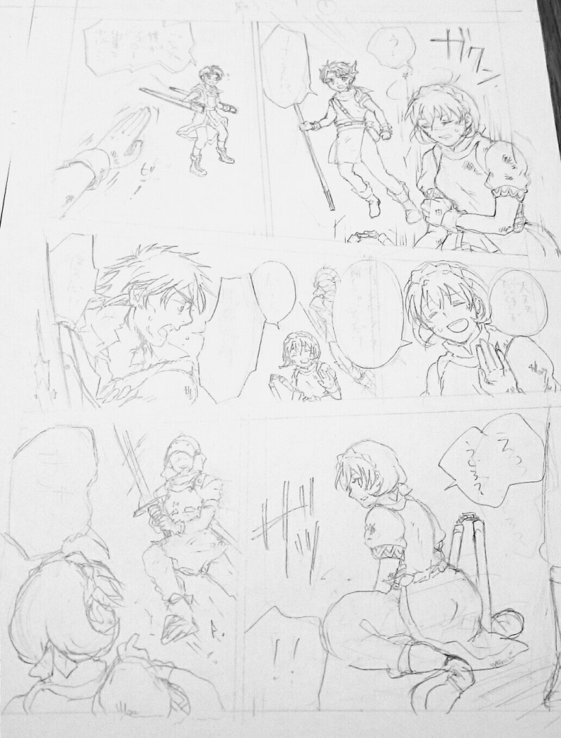 毎日『絵が下手!!!!!』って内心キレながら描いてる…。アクション(戦闘)シーンが描けないので深夜に定規を握りチャンバラポーズについて考えるはめになった。どうせなら飾れてなくて丸まったままのタペストリーを握った方が良かったのでは…とあとで思ったけど恐らくそういう問題じゃない。お姉ちゃん可愛く描けたのではという錯覚。でも他とのバランスが悪くて構図がシュールだから消すかもね…。