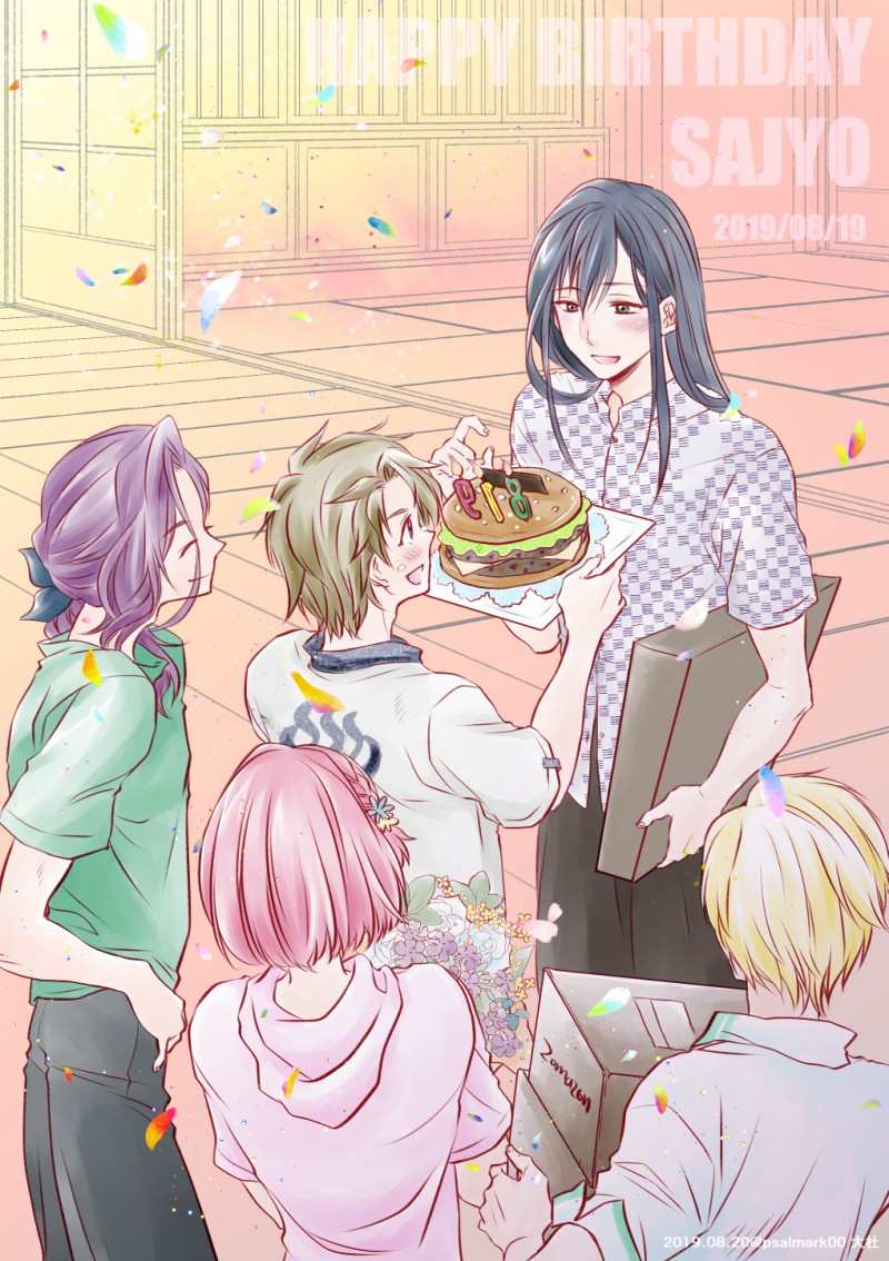 ちな、佐祐が(Myu.さんが仰ってたハンバーガー)ケーキを作る手伝いをしてくれた知樹さんと、個人的に花を持ってきてくれた花奏くんと、ちょっとまた隠してくれませんかねーってZomazonの箱を持ってきて偶然遭遇したなつきっち、って図ですん笑
