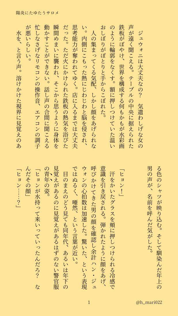 代わりといっては何ですがjwと27歳の警官になりたてのdsさんが江原道の派出所で一緒に働くIF話の冒頭を置いておきます。全8p 続きます。