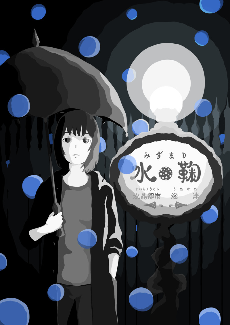 「水鞠」という駅の設定です。この地域の観光の一つである「鞠のようにまるい雨」が静かにゆっくり降ってくる現象です。