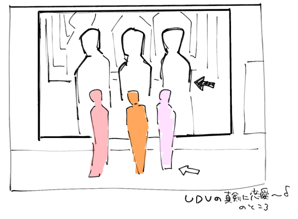 モニタの方が絶対大きく動きも姿も見えるんだけど、実像を観てしまうんだよなのシーン