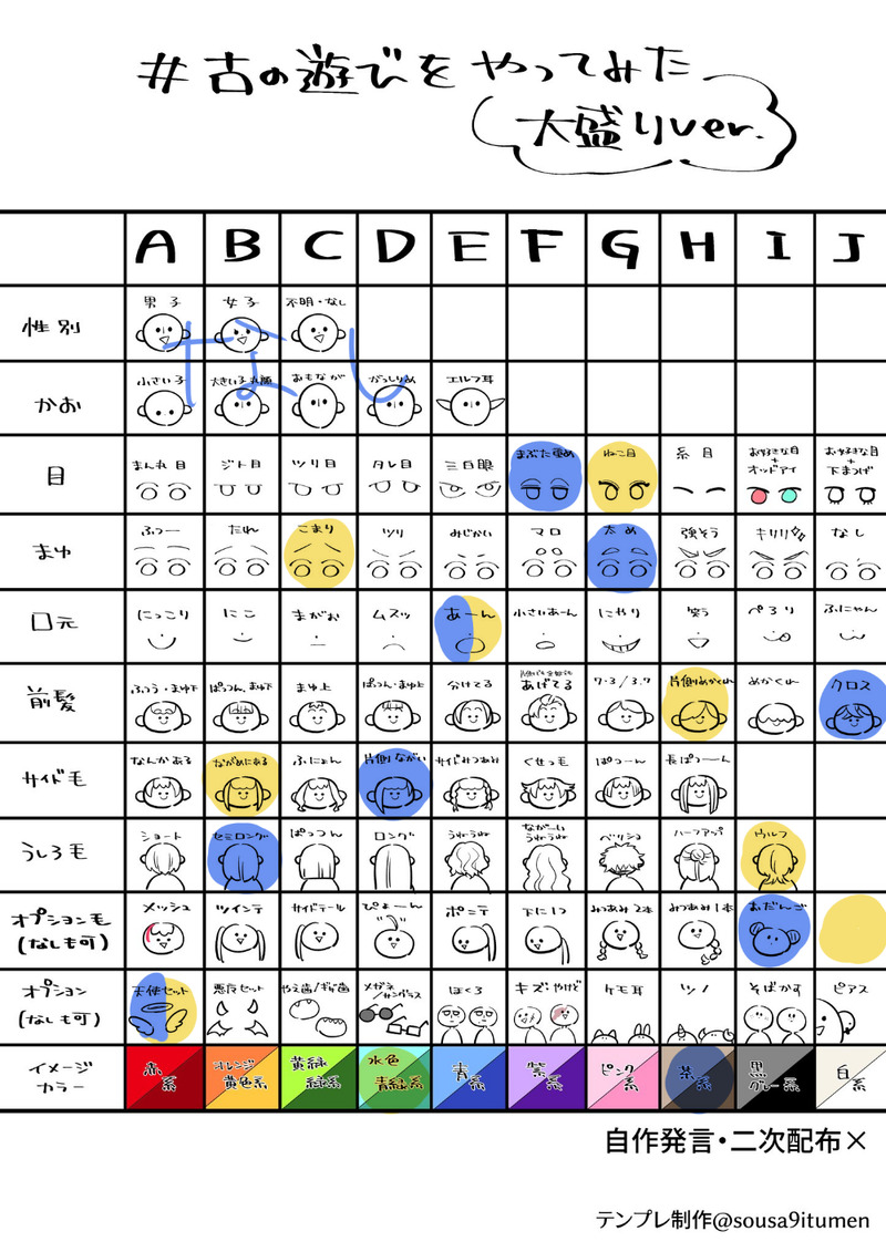 ランダム抽選で出たもので描いてみた曲占らくがき