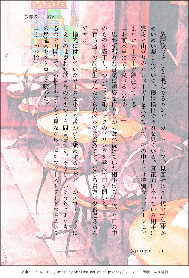 yuruyuru_oni☆quiet followDONEなんとか間に合った!ハンバーガーの日らしいので現パロ白加々!学生らしくファーストフードデートとかしてみた! show all(+3 images) Tap to full screen (size:630x928).Repost is prohibited Let's send reactions! freqpopularsnackothersPayment processing Replies from the creator Follow creator you care about!☆quiet follow yuruyuru_oniDOODLE父水R18、今更すぎる七夕ネタ×○○するまで出られない部屋要素を添えて。 3975 yuruyuru_oniDOODLE四ッ谷亜月さん(@Yotuyaatuki_ggg)の闘牛父水の設定をお借りして書かせていただきました!今回は🐃水初めての発情期ネタになります。※そこそこしっかり交尾してるのでリスト限定。 5661 yuruyuru_oniDONE仲良くさせてもらってる夕波カミヤちゃんに捧げるお誕生日プレゼント!現パロDK幼馴染の💧、👁、同僚くんが三人であれこれえっちしちゃうSS書きました。 3576 yuruyuru_oniDONEえっくすにて仲良くさせていただいてるらて。さん(@twin_rate )のお誕生日のお祝いに書かせていただいたSSになりますー。長生き水と伴侶の父が人間の訪れない山奥の秘湯に行って酒飲んでセッするおはなし!パスワード↑🔞? 3097 yuruyuru_oniDOODLEただのさん(@tadano_27)がお話してらしたドッグラン💧🌳の概念が素晴らしすぎたのでやらかしました。(許可はいただきました)パスワード 🔞↑? (1週間程でリスト限定にします) 1442 yuruyuru_oniDONE四ッ谷亜月さん(@Yotuyaatuki_ggg)の闘牛父水の設定をお借りして書かせていただきました!※そこそこしっかり交尾してるのでリスト限定。 4208