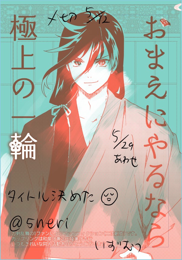 こねり~☆quiet followPROGRESS進捗でぇっす!!!(5/29あわせいずむつ新刊のためのげんこ)今日は表紙の色とロゴとタイトル考えるのに時間が溶けてしまったわ…と、いつもの1コマだけ出てくる他男士みたいなやつのスクショ #いずむつ turnUp show all(+3 images) Tap to full screen (size:602x860).Repost is prohibited Let's send reactions! freqpopularsnackothersPayment processing Replies from the creator Follow creator you care about!☆quiet follow こねり~PROGRESS入稿した!!!!!!!!!!!!!!!!!!!(不備とかなければ)(受領連絡待ちのターン!)※春コミ合わせいずむつ新刊表紙 こねり~PROGRESS肥前君を描くときは「美刃に…美刃に…」と念じているけど美刃に描けただろうか春コミ締め切りあと2~3日!稀に見るド修羅場よ~ページは泣く泣く減らした。間に合わないので… 2 こねり~DOODLE2022年11月20日今日も初心にかえっていずむつ語りらくがき・バトル編(新しいのは最初の一枚のみ)やはり【同じ幕末メインの逸話持ちだけど立場の違い・戦まわりの考えの違い・似て無いようでどこか似てる】とかがおいしいですね。二枚目以降はバトルにまつわる私お気に入りかつオススメのいずむつです。みんな気軽にドピンチのいずむつがやむを得ずお互いの刀交換とか作ってこ☆ 6 こねり~DOODLE今日の初心に返っていずむつ語るらくがき~「むっちゃんはどこで泣ける(心情を吐露)んですか!?審神者には荷が重い…せや!光の戦士兼さんに任せた!」みたいな事になっていた頃の思い出~大変にしんどくても誰にも気づかれない所で音もなくスー…っと泣いてそうなむつの心の壁オラァ!ベリベリドーン!して「頼れ!」できるのは兼さんだと信じているし、むつも少しずつ甘え方を覚えるんだなぁさにを こねり~DOODLE今日の初心に返っていずむつ語りらくがきです。やはり手合わせ会話は外せないですね。薄いブックが分厚くなります。今では信じられないでしょうが最初はあれすら無くて「うちの本丸じゃ仲良しだもん!」「展示でしょっちゅう出会ってるもん!」「元の主が同い年じゃい!」を心の支えにしていた時もあったんです。今では手合わせでめっちゃ仲良しだろ!って推して参れるやったぜいずむつ 2 こねり~DOODLEてんぽーえどもうすぐですね!ところで関係は無いんですけど封神演義(フジリュ)の普賢と太公望のらくがきです。関係は無いんですけど、私が最初に清麿を見た時の「へぇ…………ふむ……なるほど……ふむ……」みたいな感覚を察してほしい。水心子は博物館で刀見ながら実装を待ち望んでいたのですが黒髪でよりありがたくおいしく(?) related works こねり~PROGRESS5/29合わせ予定いずむつげんこ進捗。うおーペン入れ残り12枚…っていうと楽勝な気がしてきたな!ふぁいおー!※私へ はよエアブー申し込め5/29の0529#エアブーなhttps://www.akaboo.jp/event/item/20192925.html ヅカ@倉庫MAIKINGいづむつこれは続き描きたいと思いながら2年ぐらい放置してる描く描きたい兼さん梅の香りしそう あやめDONE殺し合いいずむつ兼さんは呪いを受けて真逆の言動しかできないむつは呪いが単純すぎるので笑っちゃった(結果誤解しかない絵面になる) 5 kuta2828DOODLE遊郭パロいずむつ、落書きなので色ほぼなし10ページ本丸が崩壊した初期刀と短刀がやむを得ず遊郭にいる、それを見つけた和泉守が行ってみた話的な和泉守の情緒がおかしい前田は接待をしたことはありません、全てむつが請け負っていた 10 し→んDONEおぉ…up出来た…?人を選ぶ…ショタ陸奥の いずむつ&きよむつ(かしゅむつ)&んばむつの4P…むちゅの穴しか使って無いです…みんな仲良しだね⭐︎← ナツマルDOODLEいずむつ ヅカ@倉庫DOODLE【腐注意】いずむつ続きチューが描きたかっただけ 続く…かも…1カメ2カメ3カメみたいになってしまった 2 こねり~PROGRESSペン入れ進捗~やれば早いのにやるとHPすごい速度で減るのわかってるからなかなか取り掛からない負のループ中よ…しおしお…原稿を見つめるな…今日も兼さんはいい嵩張り。(5/29いずむつ新刊用原稿中) sakana44188DOODLE身長差を味わいたくいずむつ落書き recommended works insteadofmyselfPROGRESSだいぶ前の絵の続きを今更描いてる😇#刀剣乱舞#鶴丸国永 CarolDOODLE凹んでる時に、某サービス経由でとても嬉しいメッセージを頂いて嬉しかったのと、しばらくお絵描きできなかったのでリハビリ兼ねて描いた長谷部。2枚めはボツ表情集。なんだか童顔になってしまった😅 2 sukiyaki_yaDOODLEお昼寝 にょこPROGRESSまだラフだけど下書きの方が上手現象はなぜ起こるんだろう 2 マヨコPROGRESS mgtyPROGRESSしたぬりおわり YKNRinrinMEG09DONE友達のアイコン用に描いた刀剣乱舞・髭切。実は刀剣乱舞を知らない私、公式サイトやイラストをたくさん見ながら描いたんだけどもしかしたら装備の一部が違ったり描いてなかったりするかも…。でも描くのは楽しかったです♫ 🌸すず🌸DOODLEパンケーキ食べたい!パンケーキ食べたい!パンケーキ食べたい! azutyaDOODLE本日の落書き#鳴狐#とうらぶ#刀剣乱舞