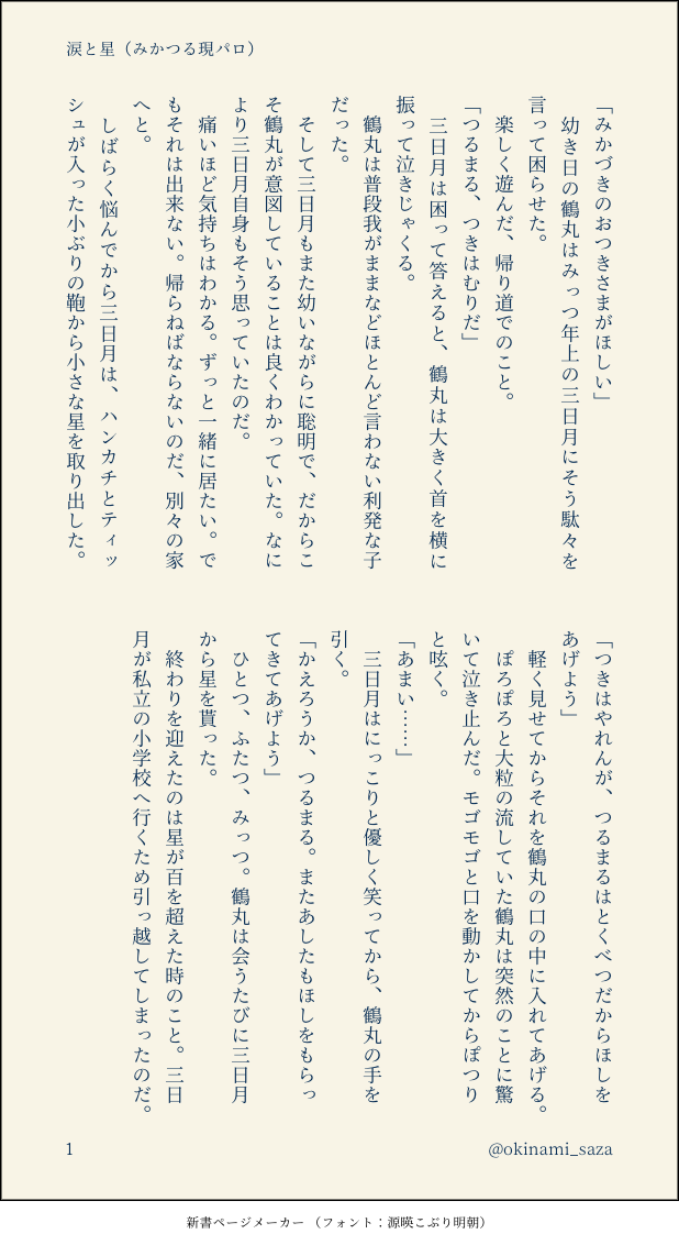 okinami_saza 土沖とみかつるの短編小説とかアップしてます@okinami_saza ☆quiet follow Yell with Emoji Tap the Emoji to send POIPOI 28
