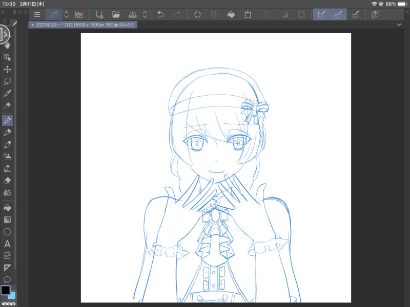 トーコクさん下書き。描くの楽しいキャラですなぁ…