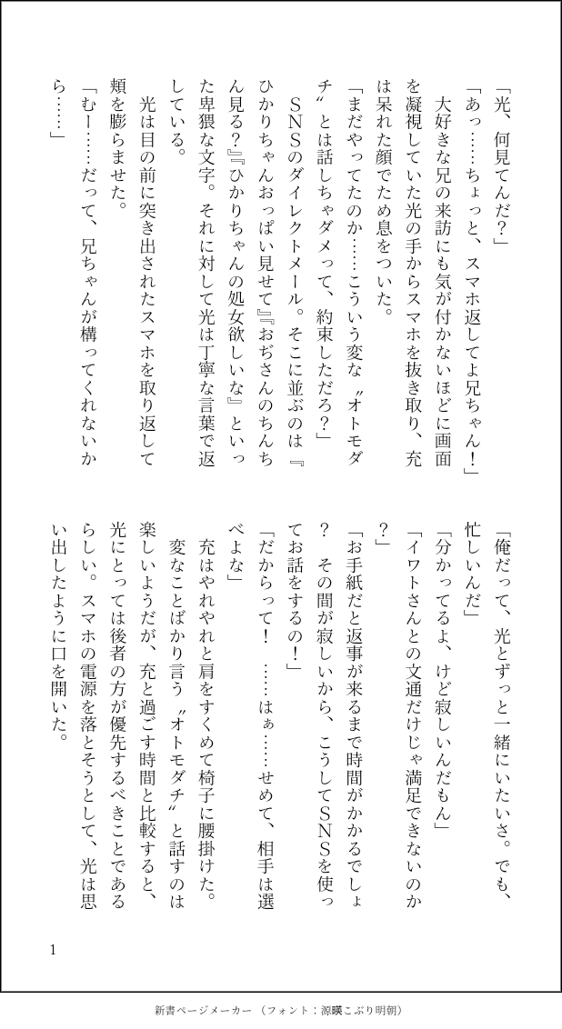 裏垢女子のひかりさん(本人はそうだと言ったことはないけど一人称が私&おっぱい見せてって言ったら顔隠して見せてくれるから裏垢女子と認識されてる)。充は生存ifの兄ちゃんというより人格充寄りかな?