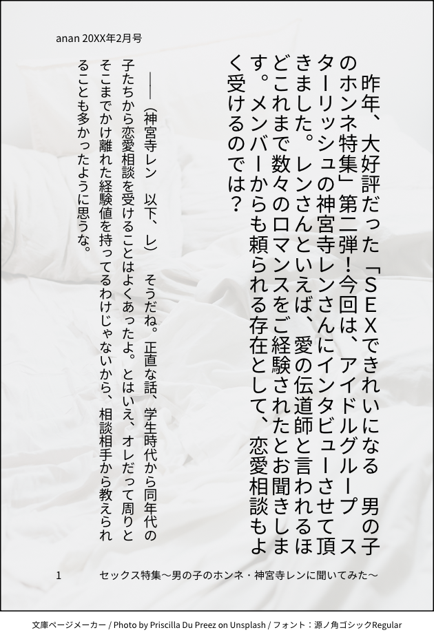 ア◯◯ン セッ◯◯特集〜男の子のホンネ第二弾 神宮寺レンに聞いてみた!〜