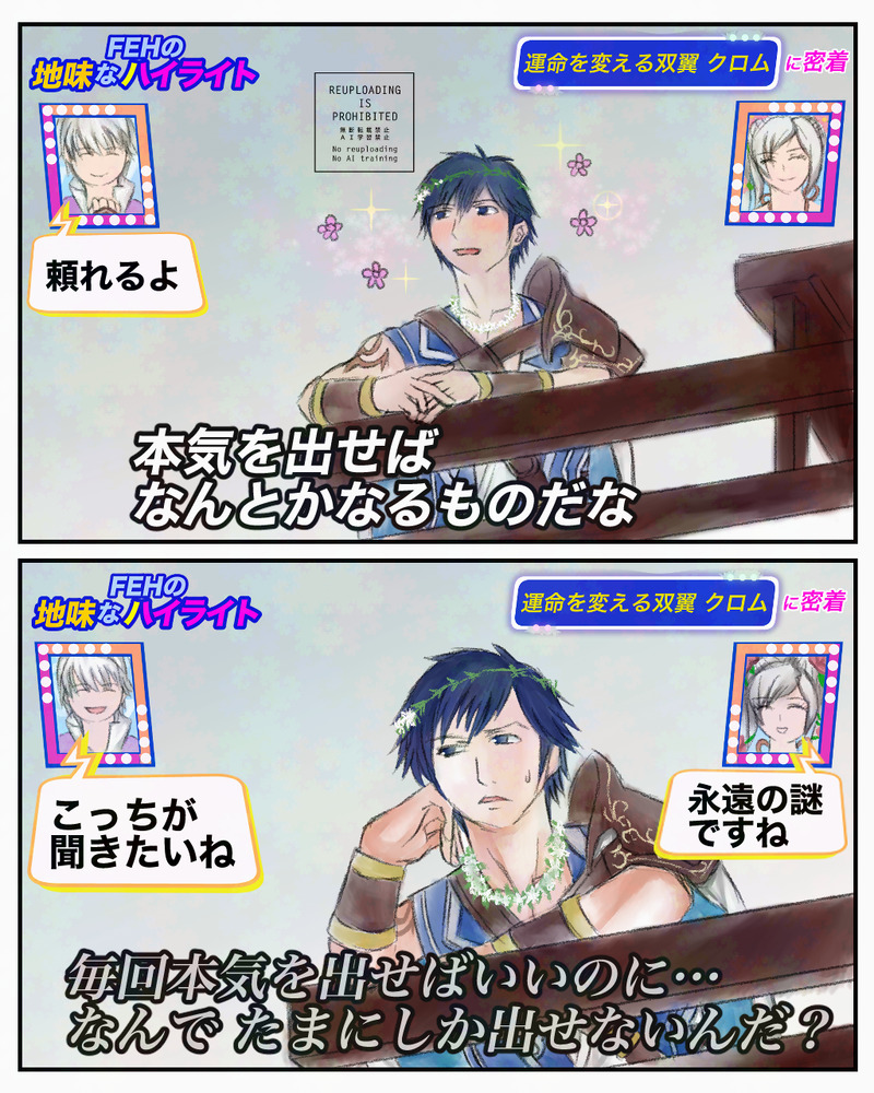 mikaso☆quiet followDONEクロム様お誕生日おめでとうございます🎉元ネタはうな◯いちどうさんです、毎度ネタ絵が多くてすみません🙇 #FEH #ファイアーエムブレムヒーローズ fireEmblemHeroes Tap to full screen (size:1024x1280).Repost is prohibited Let's send reactions! freqpopularsnackothersPayment processing Replies from the creator Follow creator you care about!☆quiet follow mikasoDONE更新、すごく久しぶりですが書き上げました。今回は家族の話で短めです。 2098 mikasoDONEクロム様お誕生日おめでとうございます🎉元ネタはうな◯いちどうさんです、毎度ネタ絵が多くてすみません🙇 mikasoDOODLEゴッホのアバター絵です、元はうちのこをイメージして作っています。よく本を読ませているので、自分が読んでいる本を描いてみました😀 2 mikasoDOODLE明けましておめでとうございます、今年の年賀状はFEHのレラパパです。今年もよろしくお願いします❗️ mikasoINFO新刊のBOOTH通販開始は2025/1/12以降になります、しばらくお待ちください! 7 mikasoMENU来年1/12のスパコミにサークル参加します!ポスターとお品書きを置いておきます。BL本ばかりなので、大丈夫かつお暇な方は気軽に立ち寄ってね。クロル腐新刊のBOOTH通販開始は1/12以降になります、しばらくお待ちください🙏 4 related works Gi-レオンDOODLE神装タクミの配布今日じゃん!!!と思ったので1時間くらいで描いてきました Gi-レオンDONE「あんたにはどんなイタズラをしてやろうか……?」ハロウィンゼロさんです!大好き!!!我慢できなくて一日で完成させてしまった……すごい……() 2 Gi-レオンDONE新英雄予告動画を見てたらエクラが出てきてテンション上がったので配信される前に急いで妄想して描きました☺️時間がないので清書は2ページ目だけですもっとエクラ関係の機能充実してくれないかな〜 3 Gi-レオンDOODLEハロウィンギム子可愛かったので描きました引きたいよ〜!!可愛い〜!! Gi-レオンDOODLE今日のお絵描き!プルメリア初描き! Gi-レオンDOODLETwitterでうちの子よその子エクラチャンを誘拐しようキャンペーンが行われたのでうちの召喚士(兼軍師)と、よその子エクラチャンを描きました 4 Gi-レオンDOODLE聖魔おもあつより Gi-レオンDOODLE落書きしてたら奇跡的にこんなの描けちゃったので投稿╰( ^o^)╮-。・*・:≡うちのオリジナルエクラ(オリエク)3人組です😉2枚目は真ん中の子単体絵まだまだなのは分かるけど、複数人、しかも全身絵なんて描けたの初めてだったから……!なんか嬉しくなっちゃいました! 2 sakigorouDOODLE水着先生をみんなに見せたくない殿下😊✨