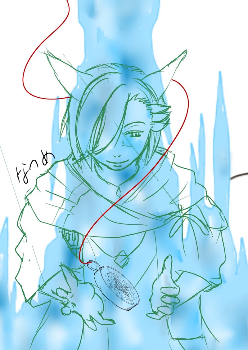 クリスタルの残光のパッチアートをオマージュした新しいお話の表紙ラフだったんですが、これは流石にパクリと言われちゃうなという事でボツ😭