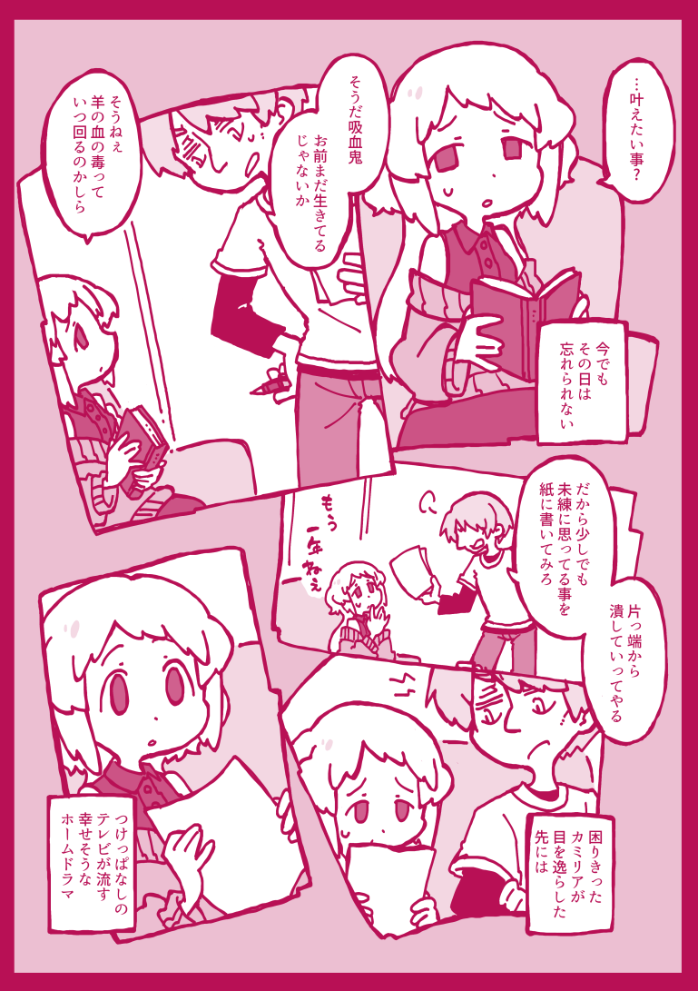 十宮はな☆quiet followDONEハンスとカミリア(8) ##ハンスとカミリア show all(+4 images) Tap to full screen (size:769x1091).Repost is prohibited Let's send reactions! freqpopularsnackothersPayment processing Replies from the creator Follow creator you care about!☆quiet follow 十宮はなDONEハンスとカミリア一周年!記念のカウントダウンイラストでした 5 十宮はなDONEハンスとカミリア番外編(7) 初めてお酒を飲んだ日の話 8 十宮はなDONEハンスとカミリア番外編(6) 師匠と弟子達の話 十宮はなDONEハンスとカミリア番外編(5) 記念日の話 2 十宮はなDONEハンスとカミリア番外編(4) 買い物に行く話 6 十宮はなDONEハンスとカミリア番外編(3) 服のセンスの話 recommended works UKLOVEGOOD1DONE強供(こども)路地裏を歩くチンピラと出会ったこどもの正体とは…?!漫画完成いたしました!!超短編漫画お楽しみください!! 2 はるのPROGRESS二重線の先へ 本編に載せきれなかったミニ番外編や タイトルの語りです「蒸しパン」 なんでエミヤは蒸しパンを渡したの?「マスターからの返信」 結局マスターの返信は何が来てたの?「タイトルの由来」 二重線?ってどっから来たの?本編を読んでないと1ミリも分からないかもです。きちんと書く時間と元気があれば修正とか追加とか、くっついた後のR-18の話あるかも 4 十宮はなPASTリビーの特別な日 5 十宮はなPAST203号室のナンシィ_1幽霊の女の子と暮らす事になる漫画。 12 十宮はなDONE春待つ太陽 20 平和井戸MEMOお題箱ガチャで書きました。サヨナラなんて似合わないはずなのにサヨナラをする百と鳴#お題ガチャ #誰かを満たすかもしれない https://odaibako.net/gacha/929?share=tw… 247 rishan_oolongValentine2月14日のサイテリ短い分、糖度は高め 703 _munomaru_DOODLE村上春樹の信者とネタが通じない人は読まないでネ。 599 紫水はくDONE皆さん初めまして。紫水はくです。思いついたものを気ままに載せようと思います( *´꒳`*)お時間ありましたらぜひ覗いて行ってくださいね(⋆ᴗ͈ˬᴗ͈)” 464