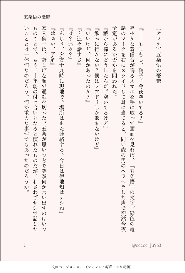 ccccc_ju963☆quiet followPROGRESS『邂逅』の続編(仮題『解放』)の最後につける予定のオマケ 早く本編書きたい、私も幸せな虎伏書きたい、、文才が来い、。 show all(+7 images) Tap to full screen (size:630x928).Repost is prohibited Let's send reactions! freqpopularsnackothersPayment processing Replies from the creator Follow creator you care about!☆quiet follow ccccc_ju963PROGRESS『邂逅』の続編(仮題『解放』)の最後につける予定のオマケ 早く本編書きたい、私も幸せな虎伏書きたい、、文才が来い、。 8 recommended works KamenokoraUsagiDONEsuperbatの愛情表現の話。せんしてぃぶ。 毕加花(Picaffa)DOODLE rubidium00DOODLE伊得水仙 2 隐居佳佳子DOODLE你睡了吗 4 zzzDOODLEバーチャルチョコの返信ありがとうございました💘🥰 4 @maaDONE18ページ目:「一度くらいなら教わってあげてもいいですけど」の続き シュナルル濡れ場手前でコマ毎の人数も増えて体も難しい、描くのに時間がかかるようになってきました へぷたDONEおっさんモブとNRCの日常3話目です。パスワードは共通パスです! 8 maroyakacometDOODLE忍たまキャラ練習 4 ゆりげDOODLEみんなで商いver.の伊作キュンかわいい!!