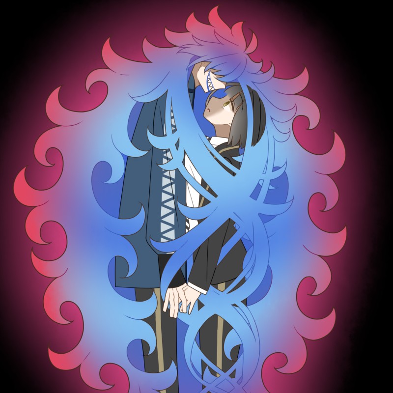 具合の悪そうな顔だとか、黒っぽい服を着ているところとか変なところは沢山あるけれど、何より奇妙なのは髪が燃えているところだ。その人の項の辺りまでを、ふわふわと燃える青い炎が覆っている。初めて見た、一体どんな魔法なんだろう……僕がじっと観察していたのに気が付いたのか、その人は此方を見た。気怠げだけどどこか鋭い、そんな視線だった。