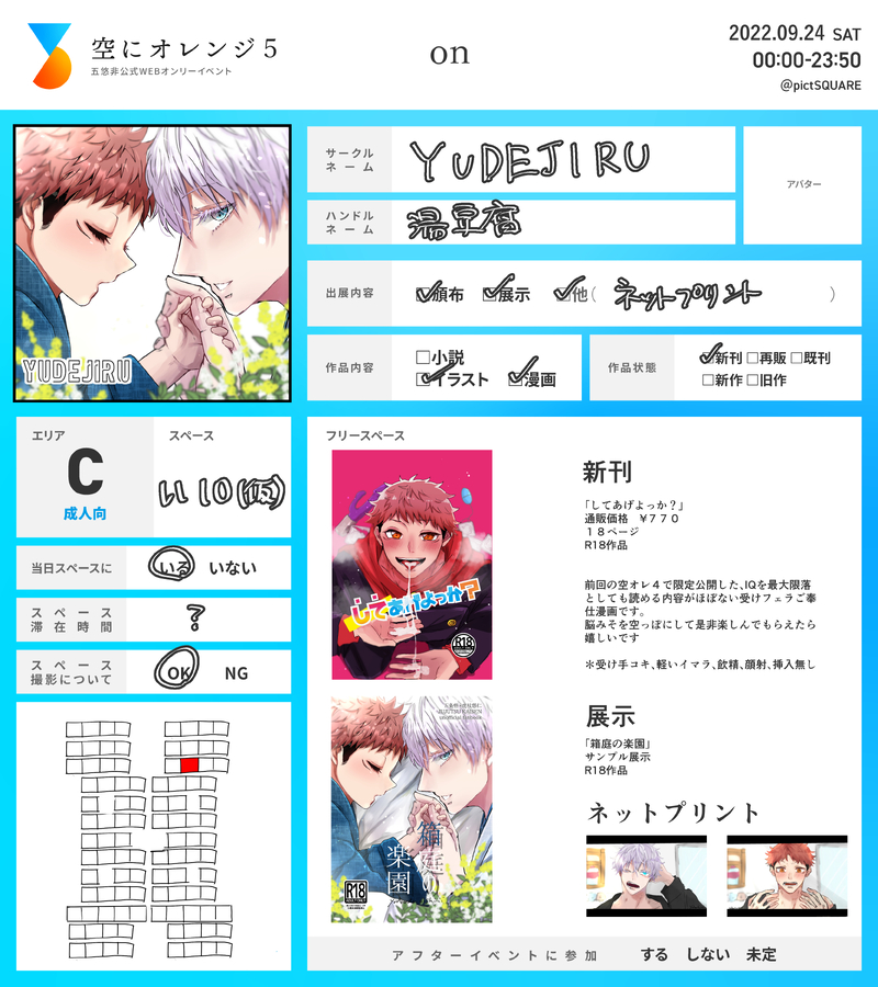 湯豆腐☆quiet followMENU【空にオレンジお品書き】*新刊販売先URL 【https://ec.toranoana.jp/joshi_r/ec/item/040031016963】*新刊サンプルURL「してあげよっか?」 ポイピク【https://poipiku.com/1457686/7542448.html】 Pixiv【https://www.pixiv.net/artworks/101274776】*新刊 show all(+1 images) Tap to full screen (size:3334x3751).Repost is prohibited Let's send reactions! freqpopularsnackothersPayment processing Replies from the creator Follow creator you care about!☆quiet follow 湯豆腐DOODLEエロらくがき 湯豆腐DONE11/17新刊表紙5️⃣オナニー本です!よろしくお願いします! 湯豆腐TRAINING攻め5️⃣のえっち中の顔練習 湯豆腐INFO五悠宮廷パロまとめATTENTIONこのお話は作者の妄想から生まれた原作まったく無視なパロディのお話です。女装が含まれますが女体化ではありません!女装・獣化・子供捏造・アナル舐め・挿入表現少なめ・転生・26巻内容あり・独自解釈あり部数アンケートにご協力ください!https://forms.gle/xFiRkDurh338hHTd6 18 湯豆腐MENUコピー本イベント価格100円全年齢 2 湯豆腐PROGRESS新刊サンプル【復活したらそりゃ×××くらいスるっしょ!】A5 14ページ成人向けイベント価格 500円 5 recommended works アカイDOODLEゆじのポーズがおもしろくなってしまったーパトカーのスタンプ笑っちゃいました! アキサカDONE五悠日常 / 秘め事 nanatolis_yuniINFO【フードスリープ&セックス】■五悠3大欲求の話その①:0212空オレ3用にポイピクにもいれておきます。最初に描いた話です※基本的にしばらくしたらフォロワー限定公開or下記↓パス限となります※twitterプロフの誕生日がパスワード(フォロワーのみの限定表示)※仕様変更後も見れるようフォローしたままを推奨です 4 くぅみDONE #五悠 #R18五悠がラブラブのんびりと日常を送っているお話。大遅刻の梅雨のお話です。捏造5️⃣家族が出てきます。心の広い方に読んでもらいたいです☺️ 11 aota_333DONEあけおめうさ五悠! funyuukokuDOODLEひよジュンhiyojun日和纯 4 miemiemiao43084DOODLE 10692 -木黛-DOODLE狗 2 tottokopoupouDOODLE出勝♀「コンプレックスラプウぺ」pixivよりも長めにサンプル公開しました!沢山刷ったので読んでいただけましたら本当に嬉しいです!通販中です!https://ec.toranoana.jp/joshi_r/ec/item/040031103589/ 26