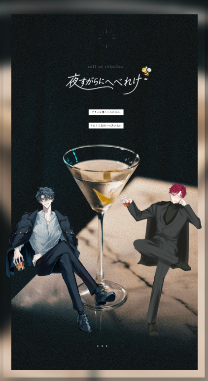 honeyyyyyes☆こそフォロお知らせクトゥルフ神話TRPG o○o。.。o○o。.。o○o 夜すがらにへべれけ o○o。.。o○o。.。o○o 𝖪𝖯𝖢/𝖪𝖯:姉川 獅音 / はにー 𝖯𝖢/𝖯𝖫:冷泉 帆鷹 / スイ END A ▸ 全生還にてシナリオ終了 すべて表示(+1枚) タップで全画面(原寸:422x771)無断転載禁止 リアクションをたくさん送って応援しよう! よく使う人気おやつその他支払処理中 作者からのリプライ 気になる人をどんどんフォローしよう!☆こそフォロ honeyyyyyesお知らせクトゥルフ神話TRPG o○o。.。o○o。.。o○o 夜すがらにへべれけ o○o。.。o○o。.。o○o 𝖪𝖯𝖢/𝖪𝖯:姉川 獅音 / はにー 𝖯𝖢/𝖯𝖫:冷泉 帆鷹 / スイ END A ▸ 全生還にてシナリオ終了 2 honeyyyyyesお知らせ𝗖𝗮𝗹𝗹 𝗼𝗳 𝗖𝘁𝗵𝘂𝗹𝗵𝘂◤ そうして夢は座礁する ◢KP:秋春都築 秦 / 秋春梔 十流 / スイ鳴海 宇音 / みずの氷高 薫 / はにー▸ 全生還 honeyyyyyesお品書き honeyyyyyesお品書き 2 honeyyyyyesお品書き honeyyyyyesお品書き- 𝐶𝑎𝑙𝑙 𝑜𝑓 𝐶𝑡ℎ𝑢𝑙ℎ𝑢 -「 ビスポークランドでなにがあったか? 」 𝐾𝑃 :スグリん 𝑃𝐿 :秋春 / スイ / はにー HO1 アイザック・スカリー HO2 フィーロ・ロピアーナ HO3 アシェル・コールマン 生還 おすすめ作品 M1x_Mixらくがき(🦊fur📀)🐰 15+yes or no 2 176sushiメモ汐留ルート、竹芝ルート実況メモ※すみません、2枚目の矢印の向きを完全に誤っています すみませんこいつ興奮しすぎだろと思って見逃してください すみません 4 makoto_kuturufuらくがき何だかんだよその子ちゃん達が書き溜まってたので見せびらかしちゃおうかなと…本当に好きです…同卓した子もしてない子もいますネタバレはないです! 10 nuittukikageらくがき ichigomaru1155ネタバレルルパのテンション2枚目は1日目イベのネタバレありしんどい...落差で風邪ひきそう。 4 nog_nog11らくがきあの人バージョン suzunariできたBON衣装だいすきなので描くの楽しいですBON ST累計再生1億回突破記念2025.4.23 2 dydy_tsukidyらくがきレプリカントの葬列のネタバレあり。げんみ❌内容知ってる人なら分かるあのシーンのあれです。大昔の自分の描いた絵を参考に描いた。 しらたまらくがきVOIDげんみ❌ぼいち⭕️凛ちゃんと赤星(私服捏造)息抜きで描いたから雑です〜 4
