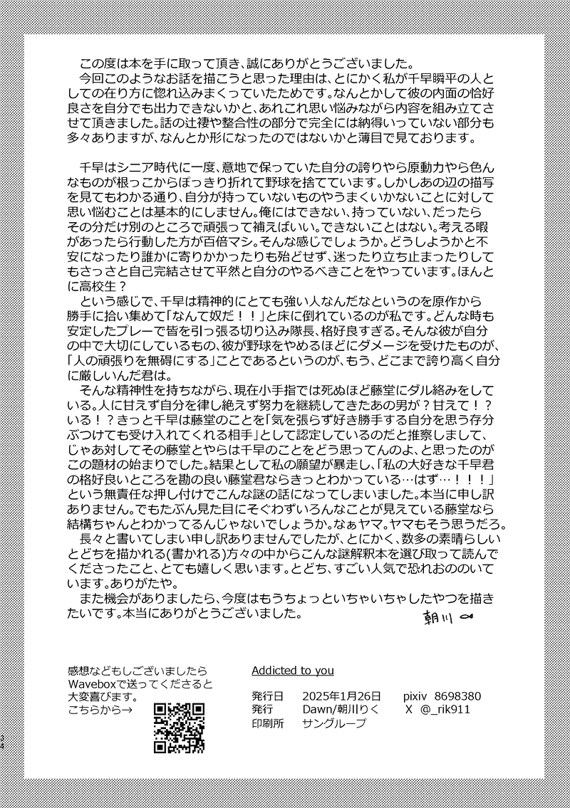 _rik911☆こそフォロ供養とどちweb再録のあとがきページです。死ぬほど暇な時にでも タップで全画面(原寸:1748x2480)無断転載禁止 リアクションをたくさん送って応援しよう! よく使う人気おやつその他支払処理中 作者からのリプライ 気になる人をどんどんフォローしよう!☆こそフォロ _rik911供養とどちweb再録のあとがきページです。死ぬほど暇な時にでも _rik911供養R18とどちのプロットもどき(文字だけ) 文なり漫画なりにする目処が立たないのでよかったら見てってください あともし何かしらの形で作品にしたい方いらしたらご一報ください 私が1番見たいpass R18↑? 2514 _rik911供養千早の長打について、少し前に作ったネームもどきです。結局直リメ2で出した奴と色々かぶったりして完成形にすることは無さそうな予感がするので供養 いつもうっすら体調悪くしてごめん千早 7 _rik911らくがきえっちしてるとどちのち pass 18↑? おすすめ作品 88888ohanaらくがき小白と风息14 9 xx_xxxxx0b0r0xらくがき薬キメスケベして欲しいよ〜dノワはほんとはエイプリルフールネタで出したかったんですよね 5 POI11463999らくがきDaisy x Ivory Wraith. Takes place shortly after that last picture. 2 雪見/はるのみ作業進捗むねたお♀と礼雪♀同軸の話ver.1.3(完成版) 2580 kyky509らくがき🐰 Shipuriかけねえr18↑(yes/no) 5 koga0707らくがきゾディアックスクール現行未通過❌これは現行陣の寅さんが言ってたやつをそれっぽく描こうとしたけど無理だった産物 2 女🍓らくがきなんか違う見せ合いすけべー!!思ってたのと違って泣いたー!!エロいからよし!!!pass▶︎18↑?yes/no シノダらくがきいわひら現行未通過❌信者の秘匿含らくがきたち 3