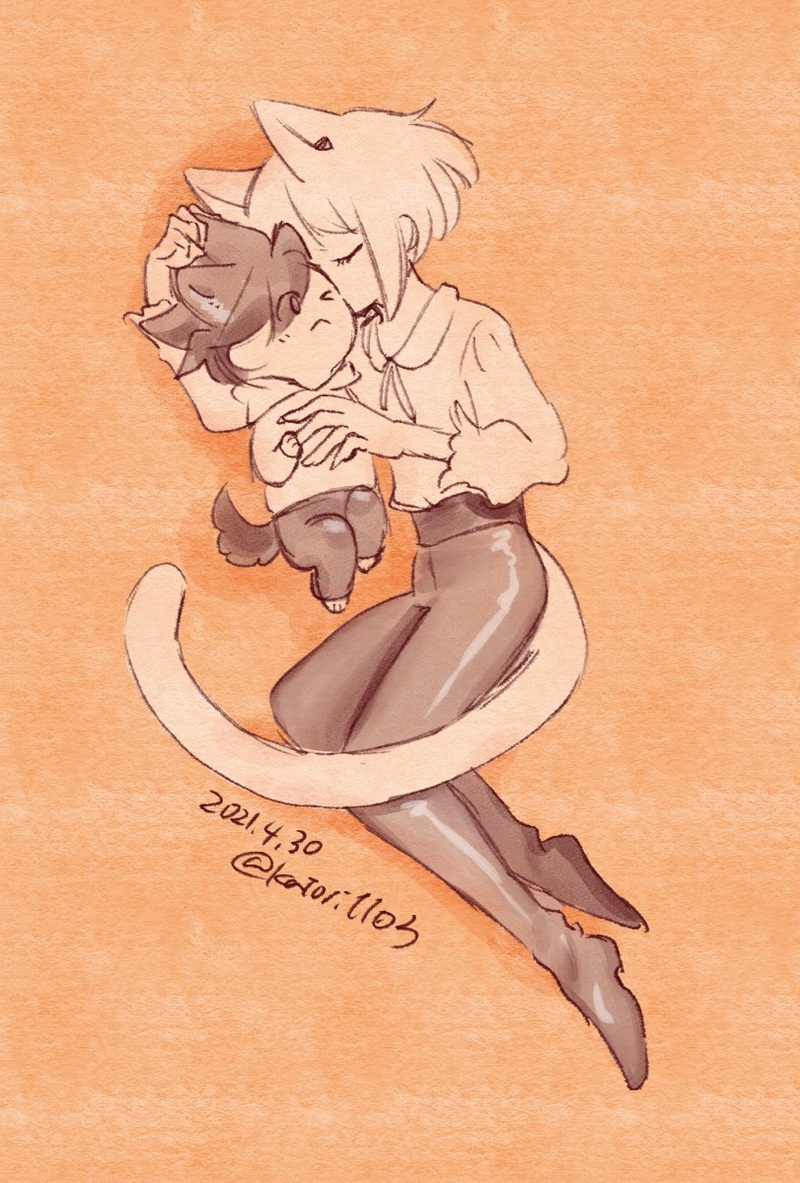 半分眠った仔犬は、黄色い猫のふわふわした上着に鼻をうめながら