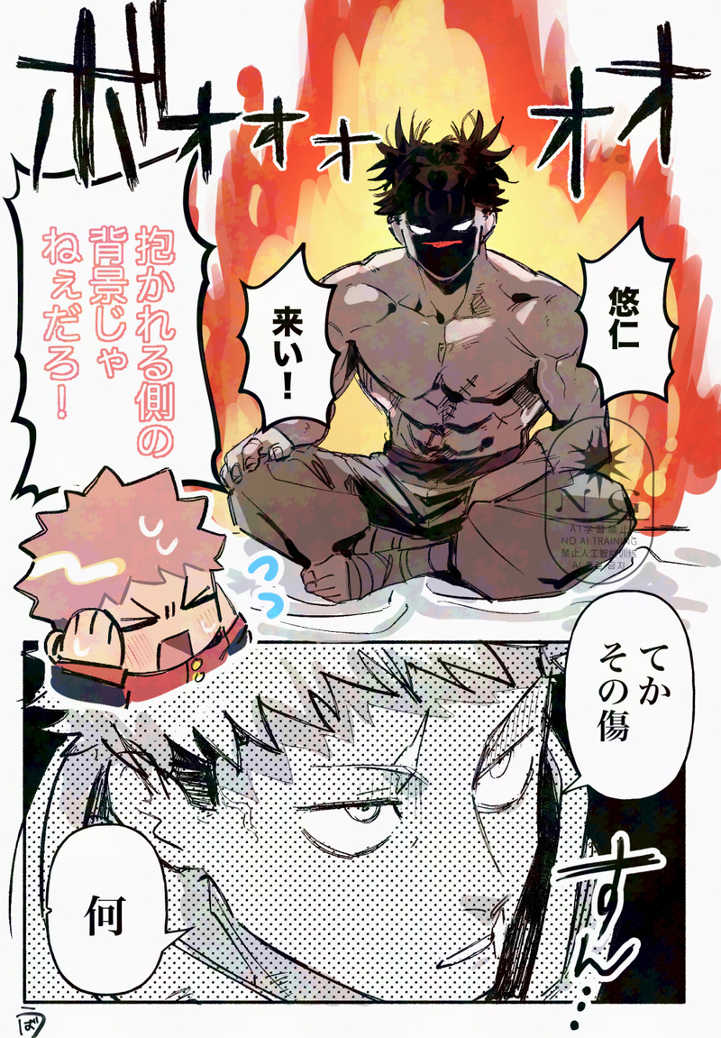 脹相は彼のふたりの弟と同じように葬られた。俺は九十九さんの隣に立って、その様をずっと見ていた。命尽きるまで戦ったのだろうと分かる傷だらけの身体が火に抱かれ、骨になって、小さな壺に収められて、森の中に建てられた小さなお堂の中に収められるまでを、ただ静かに、目に焼き付けるように眺めていた。