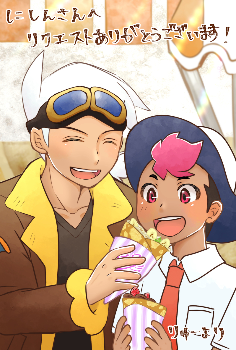シチュはお任せとのことで、ちょっと捏造入ってしまいますが、今回は学園の制服のまま放課後デートでクレープを食べるロイフリを描いてみました。