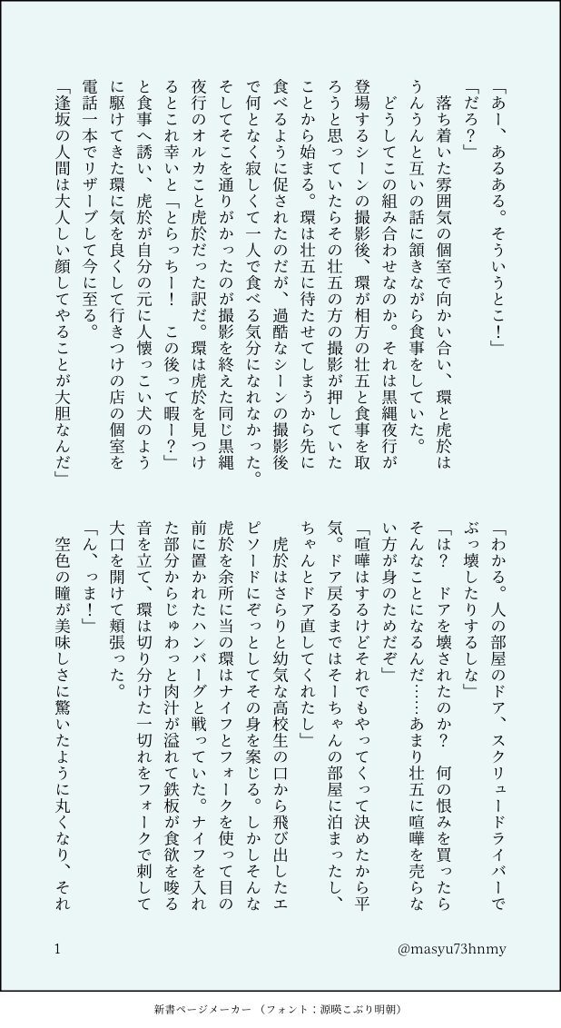 masyu73hnmy☆quiet followDONE🌱についての話で盛り上がるも最終着地点で大幅にすれ違う🍀と🐯の話(環壮) show all(+4 images) Tap to full screen (size:618x1132).Repost is prohibited Let's send reactions! freqpopularsnackothersPayment processing Replies from the creator Follow creator you care about!☆quiet follow masyu73hnmyDONEアンフジで気が狂ったオタクの幻覚 7 masyu73hnmyDONE環壮の日🩵💜 7 masyu73hnmyDONE環くん誕生日SS『talaria』another storyPass:環くんの誕生日4桁 2 masyu73hnmyDONE5月6日大遅刻 6 masyu73hnmyDONEある盗賊の男の牢獄暮らしの話 2 masyu73hnmyDONE優しい人が強くなり、強い子が優しくなる二人でやってきて生まれたその関係性が好きって話 2 recommended works 安郁卿DOODLE这些个也放着吧都发不出去🥲 3 らてぃうまDOODLEブラモモ(?)🍑さんの疲れに気づいてスパ連れてく😈さん。 1063 relwritDONE- 6895 O.teeeDOODLE『今日こそ俺の下でその綺麗な顔をかいらくに歪ませるがいい』と意気込んで即流されたドヤ澄 EBIFLY_72DONE2月まとめ 21 らぶたろおじDOODLE眠れないお疲れ啓司 lodijkaDOODLEonyx cream cookie KangormDOODLE"เขี้ยวน่ารักดี""ลองขบมันลงบนตัวข้าสิ" 2 ゴッゴッゲッゴッゲッゴッゲッDOODLE金田一少年の事件簿の最後にちんちん作った若葉ちゃん