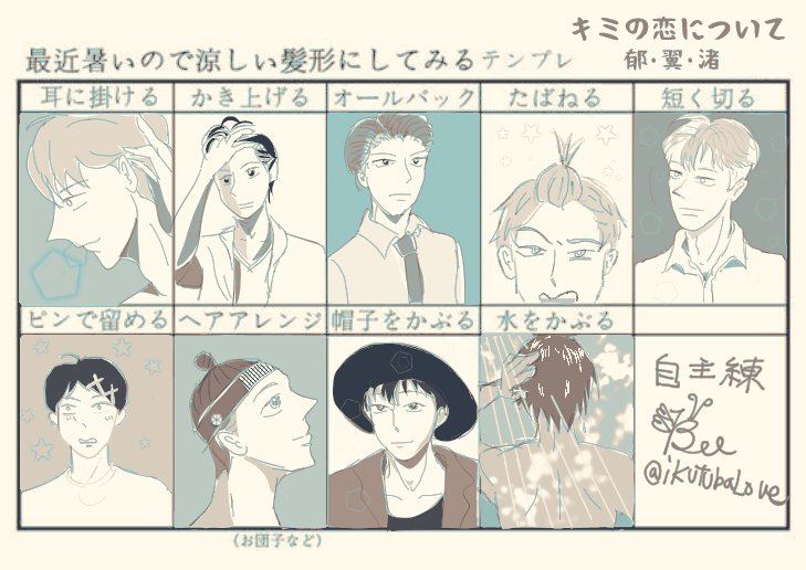 涼しい髪型のテンプレをお借りし、キミ恋キャラで、お題を描いてみました。