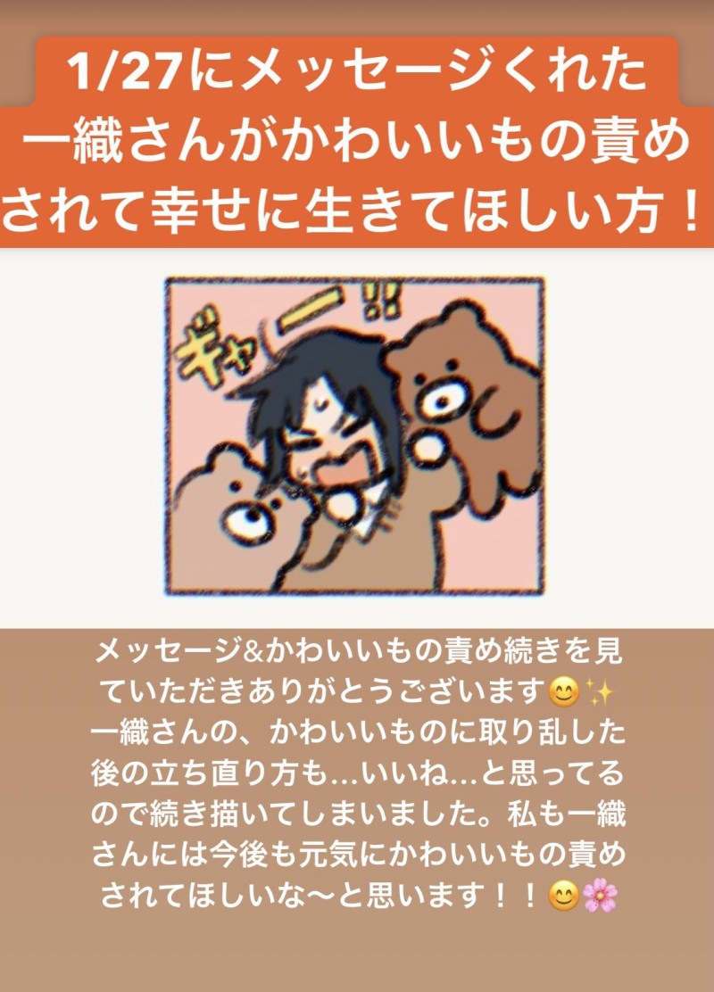 豊竹☆quiet followINFO1/27コメント返信です! #コメント返信 commentReply #フリート記録 fleetRecord Tap to full screen (size:1125x1564).Repost is prohibited Let's send reactions! freqpopularsnackothersPayment processing Replies from the creator Follow creator you care about!☆quiet follow 豊竹DONE拘束されたネロですネロ、なぜか緊縛が似合う (個人の意見) 豊竹MOURNING旧リバレ ぼつくよう 豊竹INFO8/4にメッセージくれた方!情報ありがとうございます。「ハロプロの名曲打率100%のガチのガチの名コンビ」って最高確定じゃないですか…そんなの絶対最高…ですしNNTは実際最高…………………ハロプロガチ勢さんありがとうございます!! 豊竹INFO7/22にメッセージくれた方!絵だけでフォローしてくれたんですか!!なんとありがたい…ありがたすぎます…あなたの知ってるジャンルの絵でお返事したかったのですが分からなかったので犬描いときましたまた見ていただければ嬉しいです。メッセージありがとうございます! 豊竹INFO7/22にメッセージくれた方!フォロワーの話、そうなんですよ〜何をやっても減る時は減りますね…むしろ黙ってる時の方が増えるという…少し気持ち軽くなってもらえて良かったです。気にせずいきましょう!!🍮 豊竹INFO7/18にメッセージくれた方!ササゲロ漫画は私も気に入ってます、ありがとうございますー!!陸さんは最強ですからね…今後も活躍が楽しみです… related works 豊竹INFO5/29コメント返信です! 豊竹INFOコメント返信です! 豊竹INFOコメント返信です! 豊竹INFO5/29コメント返信です! 豊竹INFO6/5コメント返信です! 豊竹INFOコメント返信です! 豊竹INFO5/30コメント返信です! 豊竹INFO11/18フリートお題箱コメントお返事ありがとうございました! 豊竹INFO5/31コメント返信です!