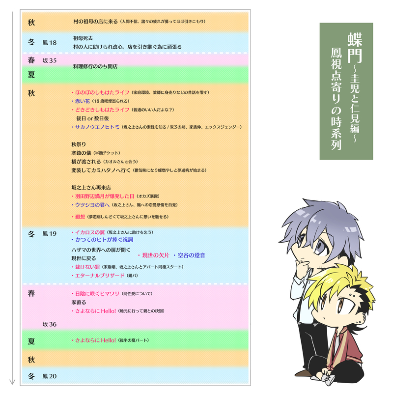 do_____me pixiv企画トコヨの蝶、ウツシヨの門(2020.3/9終了)【https://www.pixiv.net/artworks/77475630】かん奈さんの坂之上さん【https://www.pixiv.net/artworks/77717045】拙宅の鳳【https://www.pixiv.net/artworks/77718708】のその後のようなスピンオフとか落書きまとめ。満足するまで稼働中。 ☆quiet follow POIPOI 86