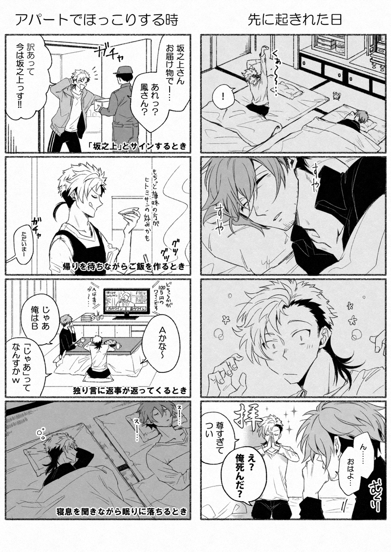do_____me pixiv企画トコヨの蝶、ウツシヨの門(2020.3/9終了)【https://www.pixiv.net/artworks/77475630】かん奈さんの坂之上さん【https://www.pixiv.net/artworks/77717045】拙宅の鳳【https://www.pixiv.net/artworks/77718708】のその後のようなスピンオフとか落書きまとめ。満足するまで稼働中。 ☆quiet follow POIPOI 86