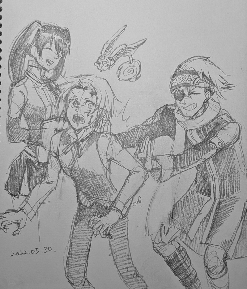Dグレのアレン、リナリー、ラビの初期デザで。