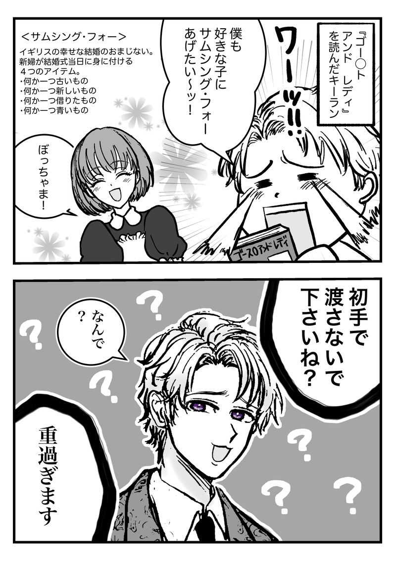 takaso37206509☆quiet followMEMOエーヴリードール/ドールハウスメモ show all(+5 images) Tap to full screen (size:2212x3139).Repost is prohibited Let's send reactions! freqpopularsnackothersPayment processing Replies from the creator Follow creator you care about!☆quiet follow takaso37206509MEMO【シナリオ】不思議の国のシルヴィーシルヴィーは毎晩悪夢にうなされます。 謎の少年は「キミの罪を教えてあげる」とシルヴィーに囁き、去ってしまいます。 シルヴィーは少年の言葉が気になって仕方がありません。 少年の後を追うと、ハートの女王の軍がシルヴィーを待ち構えています。 トランプ兵たちはシルヴィーを拘束。 謎の少年は「ハートの女王様、どうか賢明なご判断を。」 ハートの女王「この罪人の首をはねよ!」 シルヴィー「お、お願いです…やめて…!誰か助けて!!」 すると、1人の青年が飛び出し、一瞬にしてレイピアでトランプ兵を切り裂き、シルヴィーを助けます。 ハートの女王「無礼者!貴様も首をはねられたいか!?」 いかれ帽子屋「お初にお目にかかります女王陛下。私の名は『いかれ帽子屋』。『何でもない日のパーティ』を主宰しております。そして彼女は私の大切なお客様。彼女を害するなら。女王陛下とて容赦致しません。」 2685 takaso37206509MAIKING【シナリオ】演技指導「クレイグ、今から私の事は「我が君」って呼ぶこと。 私は貴方を「道化」って呼ぶから。 あなたといる時はなるべく「陛下」っぽく振る舞ってあげる。」 「ありがとう…助か。」 「おや、随分と慣れ慣れしい口を利くようになったじゃないか。 いつからそなたは王と対等になったのだ?」 「!…………もっ…申し訳ございません。我が…君……?」 「何を突っ立っているのだ。無礼者。王に跪け。」 「どうかお許しを陛下!」 「ふっ……はははは!! いやぁすまない!少しばかりいじめたくなっただけだ。 お前があまりにも可愛らしくてな。 なぁ愛しい余の道化。世の為に舞ってはくれぬのか?」 「!?/////////////」 「演技が難しいのなら、無理に演じずとも良い。 2901 takaso37206509SPOILER「人形劇」と「ドールハウス」【シナリオ】キーランとシルヴィキーラン「この辺のエリアの案内…ですか?」 ヘクター「そう、オープニングスタッフの子に案内してあげてくれない? この辺、工事中のアトラクションもあるから 一人で歩かせるには危なくて。」 キーラン「でも……」 セバス「良いじゃありませんか! 話し相手がワタクシ達やヘクター様だけではつまらないでしょう。」 ヘクター「失敬な」 セバス 「たまには外部の方とお話された方が、 ぼっちゃまも良い気晴らしになりますよ。」 キーラン「大丈夫…かな?」 ヘクター「まぁ…何か問題があったらすぐボクに連絡してくれればいいから。 そしたらこっちで対応するよ。」 キーラン「それなら最初からヘクターさんが案内すればいいんじゃ…」 3824 takaso37206509MEMOまのはさんの描いてくださった手帳キーランを見て生まれたお話です😊【シナリオ】キーランと手帳この屋敷で、エーヴリードール達と暮らすようになってから一年が過ぎた。 エーヴリードール達はみんな僕に優しい。 いつでも僕の世話をしてくれるし、話し相手にも、遊び相手にもなってくれる。 元々おじいちゃんが僕のために作ってくれた人形達だからなのかもしれない。 僕にとって彼らは大事な家族。 こんな素敵な家族に囲まれて暮らす僕は世界一の幸せ者なのかもしれない。 だから…きっと僕はおかしいんだ。 こんなに幸せな生活をしているのに、時々どうしようもなく不安になったり、寂しくなったりするなんて。 「ぼっちゃま、何か考え事ですか?」 「セバスチャン!?な、何でもないよ!ちょっとぼーっとしてただけ!」 「さようでございますか。」 彼は執事のセバスチャン。 1846 takaso37206509MEMO【シナリオ】外伝クレイグ、演技指導への不満(演技未経験のクレイグに演技指導をすることになったロージー。クレイグはそんな彼女の「演技指導」に不満を持つ) ロージー「クレイグ、演技なんかしなくて良いわ。本当に好きになっちゃえば良いのよ。私のこと」 --- 居酒屋 サーカスの仲間たちが集まり、クレイグを茶化しながらも彼を賑やかに応援する。楽しい雰囲気の中、クレイグは虚空を見つめている。 ワシリー「良いよなぁクレイグは!! あんなかわいこちゃんと? 密室で?2人っきり?手取り足取り演技指導ってか!!」 グスタフ「ズリーよ!こちとら弟の方だぞ!?イケメンに興味ねぇんだよ!!代われ!!」 ハンジ「2人とも下品過ぎるよ…」 シェン「そうだよ!クレイグはうちのサーカスのために未経験の演技してくれてるんだよ?茶化すなよ」 696 takaso37206509MEMO【登場人物資料】エーヴリードールズ<<エーヴリードール>> 芸術家ウィリアム・エーヴリー氏が製作した「糸の無い等身大の操り人形」の総称。 エーヴリー氏が製作したエーヴリードールは数多く存在しますが、 以下に紹介するのはエーヴリー氏が 孫キーランのために作った「お屋敷シリーズ」のエーヴリードールのみです