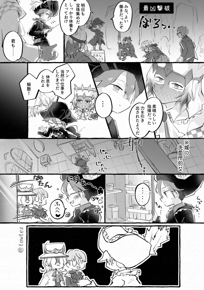 towtez☆quiet followDOODLEサガエメ1p漫画。皇帝にこじらせすぎてポンコツになってる将軍しかいません。グレロン主従も推しです。原稿期間の息抜きにサガエメの漫画をちょこちょこ描いていたのでちょっとずつ上げているけどまだある。そのうち支部にまとめよう。 ##サガ show all(+1 images) Tap to full screen (size:846x1200).Repost is prohibited Let's send reactions! freqpopularsnackothersPayment processing Replies from the creator Follow creator you care about!☆quiet follow towtezDONE以前Xで見かけた皇子ロリータ服があまりに可愛かったので描いてた。一枚絵と没ラフ、小ネタ、あと宝物の抱え方(この言い方すき)されてる将軍 6 towtezDOODLE⚠️最終皇帝x将軍(軽く)ハロウィン漫画のつづきのつづき。前回:https://poipiku.com/1498774/11312953.htmlヨミをうろついてたら色欲の塔主に絡まれた帝将です。結婚税は払いません。 3 towtezDOODLE前にちょっとXで言ってた終帝赤子ルートの妄想…将軍が歌ってる軍歌は玉ねぎの歌。「油で揚げた玉ねぎ美味しいから好き、みんな玉ねぎ好きになろう」みたいなかわいい歌です多分。でも軍歌なので突如オーストリアの悪口が挟まれるカオス。 2 towtezDOODLE※将軍は台の上に乗ってます towtezDOODLEこういうジェネラルシマリスを描いて良いですか…ってお伺いして描かせてもらったジェネラルシマリスさん+飼い主(?)🙏ずっとシマリス一家のどたばた日常をみていたい… 2 towtezDONE⚠️最終皇帝x将軍(軽く)⚠️終帝はメイドコスしません…だいぶ前のハロウィン戦士団(メイドの姿) https://poipiku.com/1498774/10968085.html の続きのオマケ漫画。髪型よくわからなくて伸ばし気味ですがアレクサンドルくん(中身は終帝)です。 3 recommended works h!63(ヒロミ)PAST女王様中心サガ絵。描いた順番はバラバラです。 59 咖哩なんぽ(アンポ)PASTサガスカのクライサワンドロのお題で描いた絵です! ほっこりトミイDONEおめでとう〜✨! ダリア(Dah.)MAIKINGワンドロ描いてみたヴァッハ神(時間切れ towtezDONE蕗の葉の下の無生ちゃん…※用心棒時代です東離の文化よくわからないですが、すごく脱衣所に自販機がありそうな温泉になってしまった 3 ほっこりトミイPROGRESS表紙予定!こちらもはよ…やらないと… 5haru88 小春SPUR ME出来た…白ふよと対比。漫画の題は決まっているので…😁ここにUPするのは、それ用に、自分的にもイメージ固める為です〜😅本編の内容とは殆ど関係性は無いです…💦 ほっこりトミイDONE諦空お誕生日おめでとう! towtezDOODLEサガスカプレイ記2サガスカ最推しは今のところ黒装束さんです。何者なのか明言されてはないですが、サガは十数年後に設定が明かされたりするからほんとに何があるかわからない