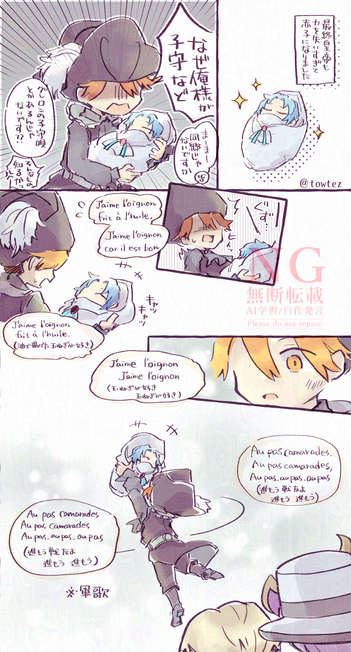 towtez☆quiet followDOODLE前にちょっとXで言ってた終帝赤子ルートの妄想…将軍が歌ってる軍歌は玉ねぎの歌。「油で揚げた玉ねぎ美味しいから好き、みんな玉ねぎ好きになろう」みたいなかわいい歌です多分。でも軍歌なので突如オーストリアの悪口が挟まれるカオス。 ##サガ show all(+1 images) Tap to full screen (size:700x1300).Repost is prohibited Let's send reactions! freqpopularsnackothersPayment processing Replies from the creator Follow creator you care about!☆quiet follow towtezDONE以前Xで見かけた皇子ロリータ服があまりに可愛かったので描いてた。一枚絵と没ラフ、小ネタ、あと宝物の抱え方(この言い方すき)されてる将軍 6 towtezDOODLE⚠️最終皇帝x将軍(軽く)ハロウィン漫画のつづきのつづき。前回:https://poipiku.com/1498774/11312953.htmlヨミをうろついてたら色欲の塔主に絡まれた帝将です。結婚税は払いません。 3 towtezDOODLE前にちょっとXで言ってた終帝赤子ルートの妄想…将軍が歌ってる軍歌は玉ねぎの歌。「油で揚げた玉ねぎ美味しいから好き、みんな玉ねぎ好きになろう」みたいなかわいい歌です多分。でも軍歌なので突如オーストリアの悪口が挟まれるカオス。 2 towtezDOODLE※将軍は台の上に乗ってます towtezDOODLEこういうジェネラルシマリスを描いて良いですか…ってお伺いして描かせてもらったジェネラルシマリスさん+飼い主(?)🙏ずっとシマリス一家のどたばた日常をみていたい… 2 towtezDONE⚠️最終皇帝x将軍(軽く)⚠️終帝はメイドコスしません…だいぶ前のハロウィン戦士団(メイドの姿) https://poipiku.com/1498774/10968085.html の続きのオマケ漫画。髪型よくわからなくて伸ばし気味ですがアレクサンドルくん(中身は終帝)です。 3 recommended works ほっこりトミイPROGRESS ##サンファン ほっこりトミイDONE完成!ガンガン頑張る ほっこりトミイDONEおめでとう〜✨! towtezDONE蕗の葉の下の無生ちゃん…※用心棒時代です東離の文化よくわからないですが、すごく脱衣所に自販機がありそうな温泉になってしまった 3 towtezDONE凜さん一発芸(しょうもない〜 ほっこりトミイMAIKINGTwitterのアイコン用!サークル参加証届いた!!やらねば😇😇😇 towtezDONE逢魔漏であそぼう3ひとつまえの続き※ちょっと蔑殺気味注意※凜が自害しようとしてます注意無生ちゃんは凜さんのお気に入りなので…他の人に手を加えられたらムカつくと思うので… 2 5haru88 小春DOODLEサンファン、2次創作漫画、幼少期編(シリアス)のペン入れに飽きてきた…と言うか、集中力低下したので…( ゚д゚)トーン練習がてら_φ( ̄ー ̄ )ちょっと落書き… ほっこりトミイDONEおめでとう!時間がなくて超絶簡易ですが…